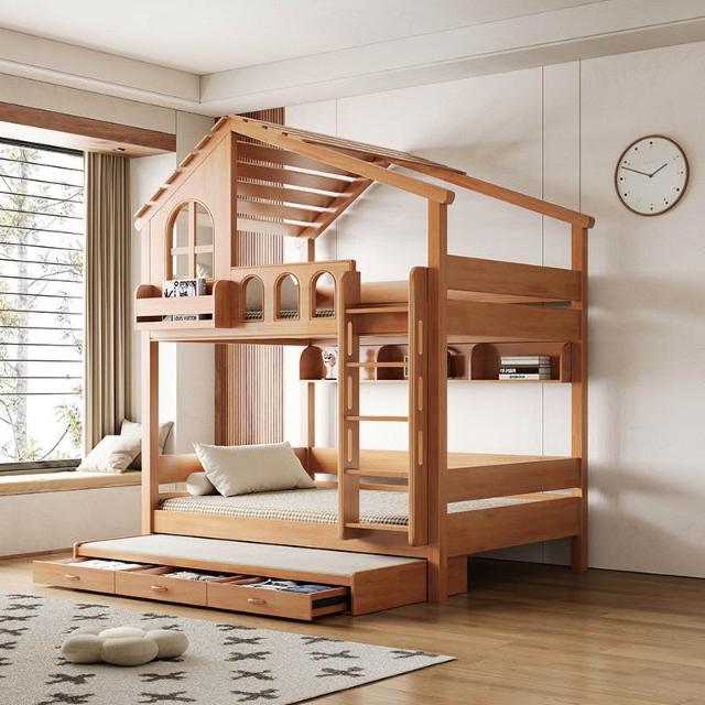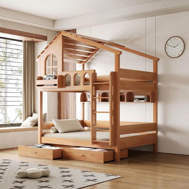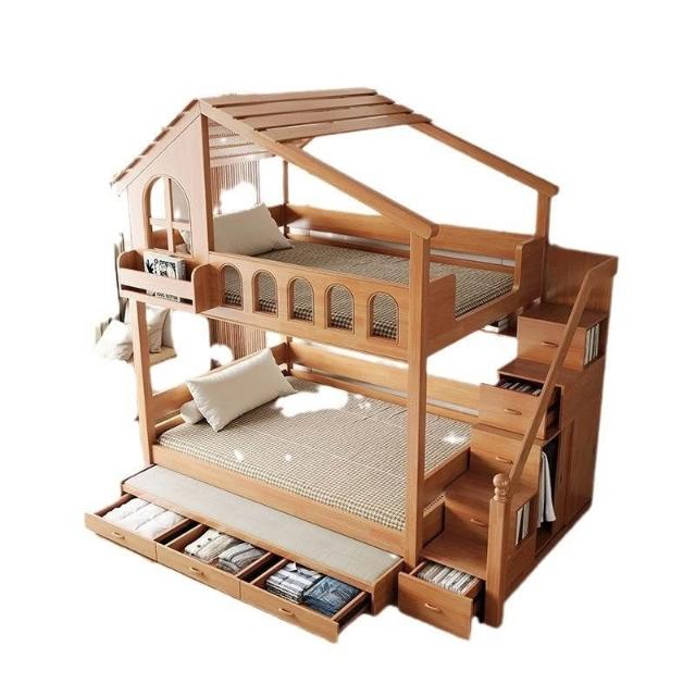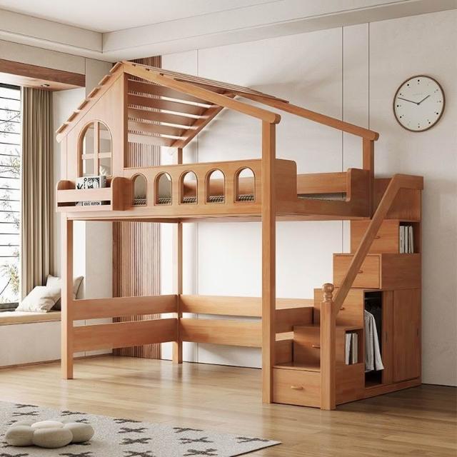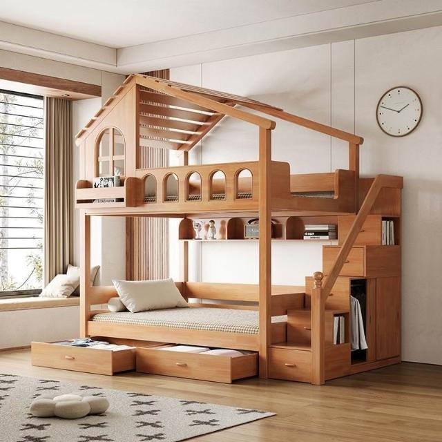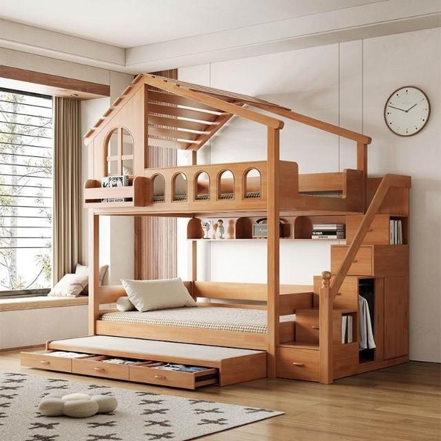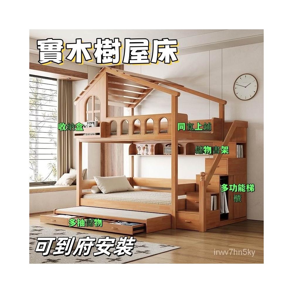 到府安裝 上下舖床架 雙層床 木床 全實木樹屋床 家用上下床 雙層床 高低子母床 上下鋪小戶型飛屋床 帶滑梯家用床