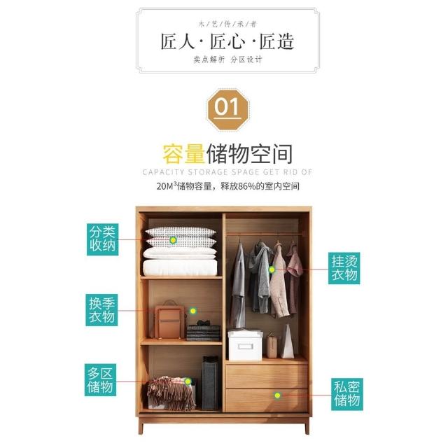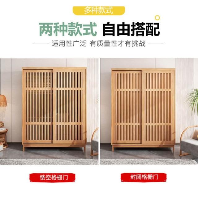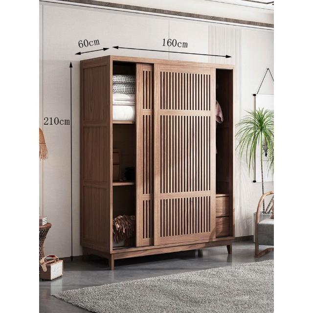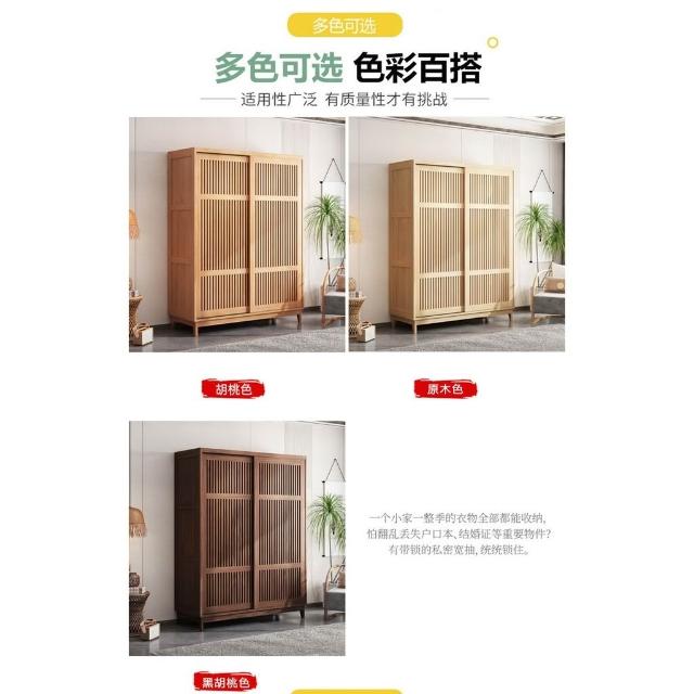 免運 日式全實木衣櫃推拉門家用臥室小戶型北歐風格簡約現代衣櫥移滑門