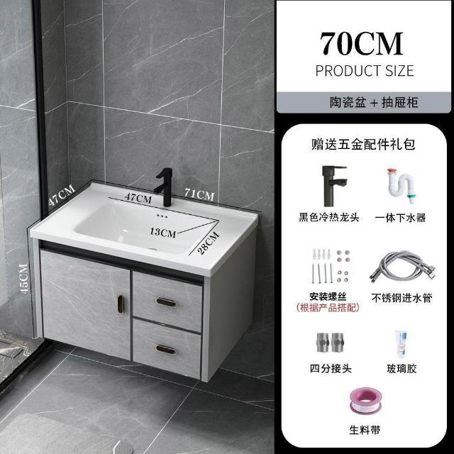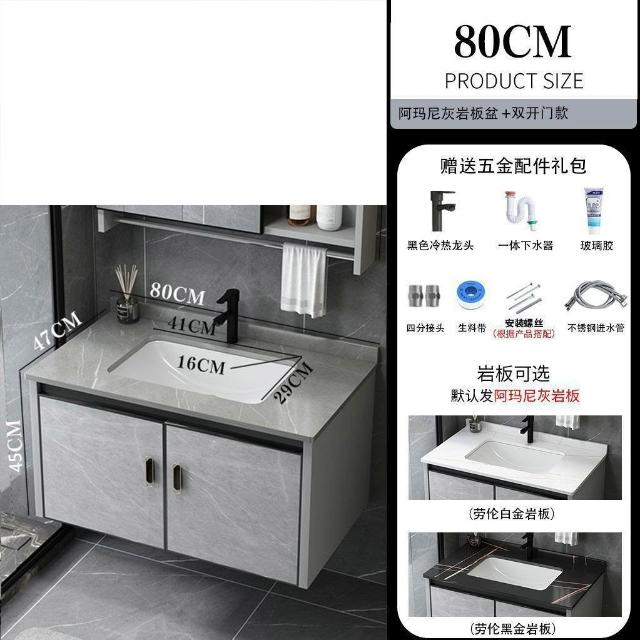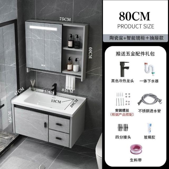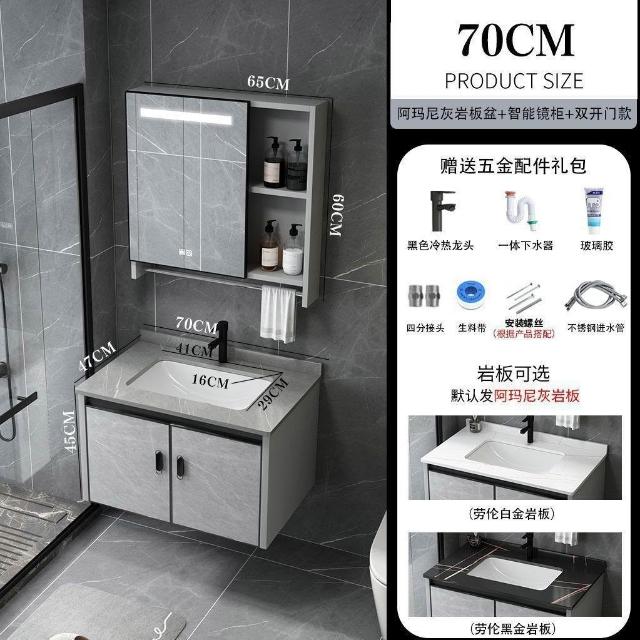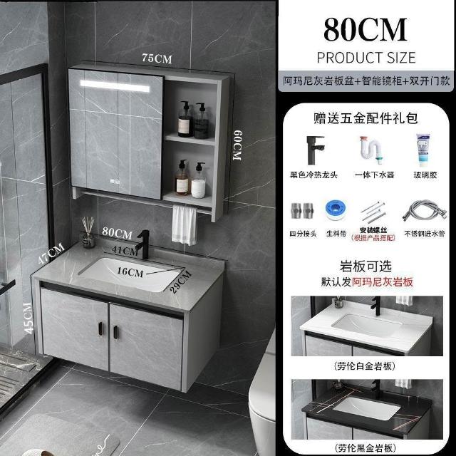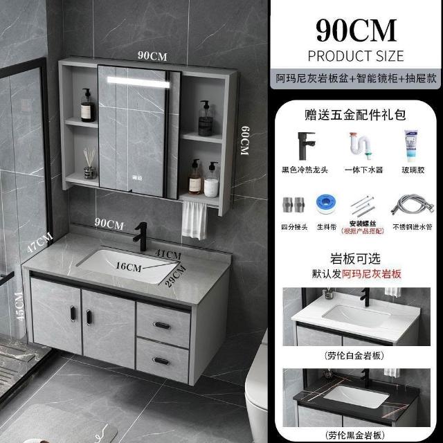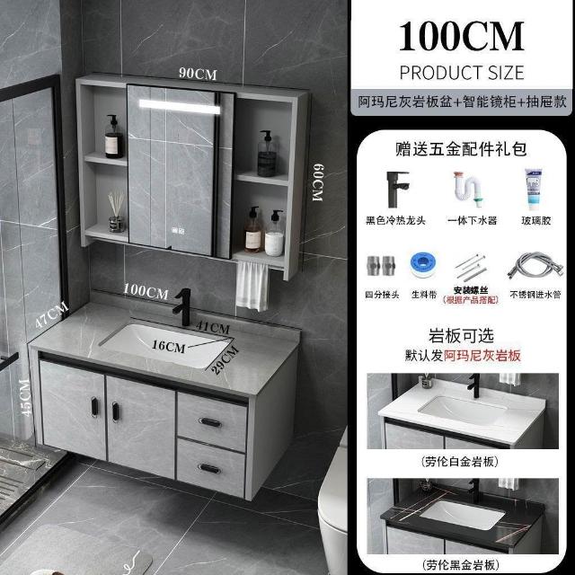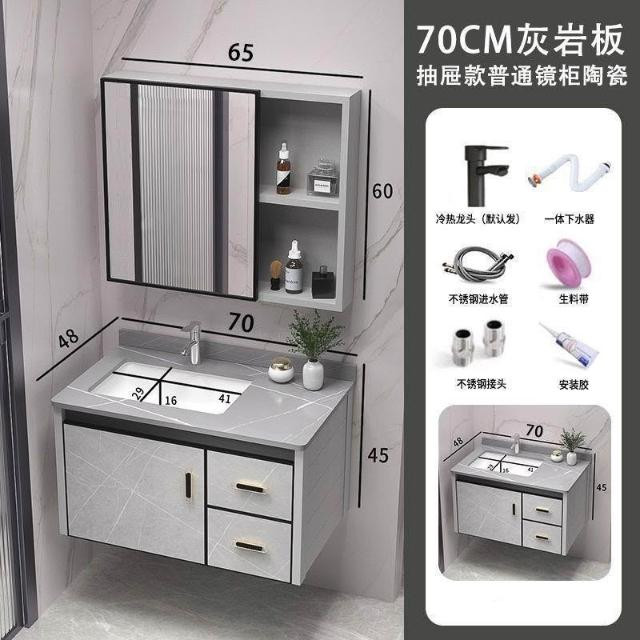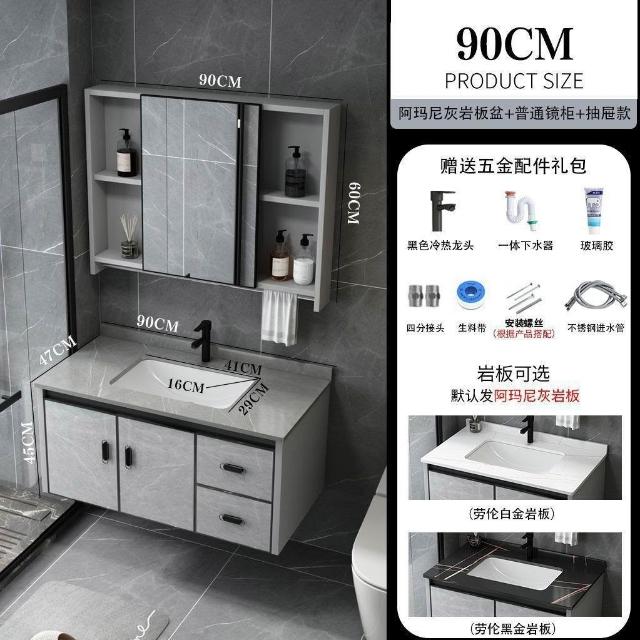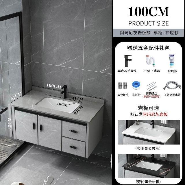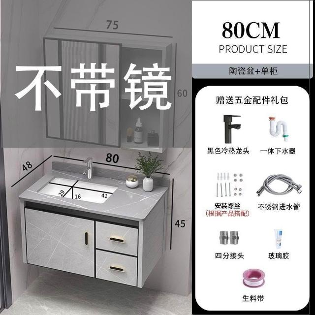 櫻慈太空鋁簡約浴室櫃組合陶瓷岩板一體盆洗漱臺衛生間洗手洗臉池