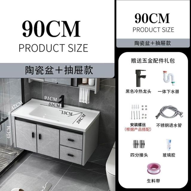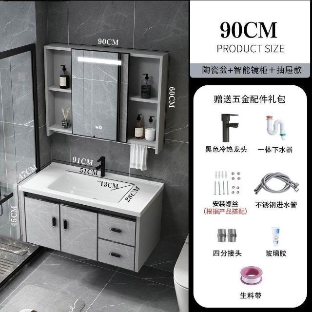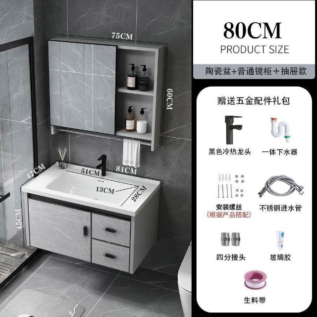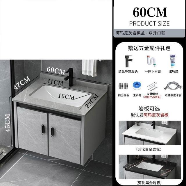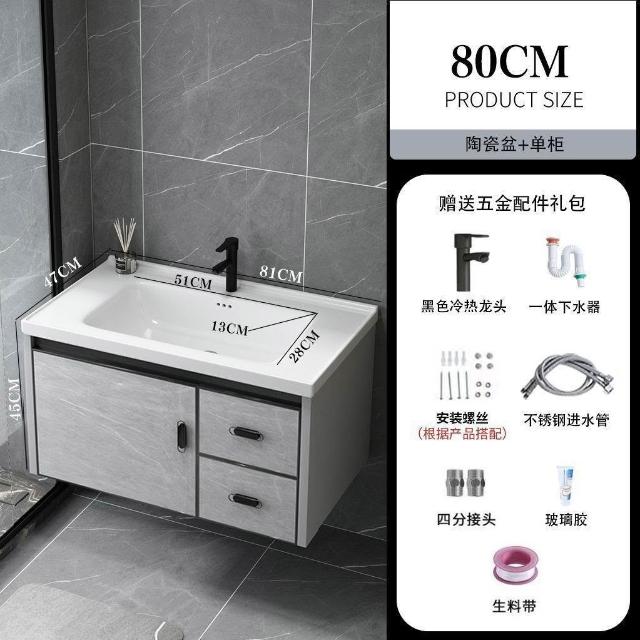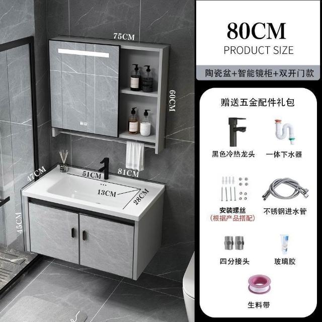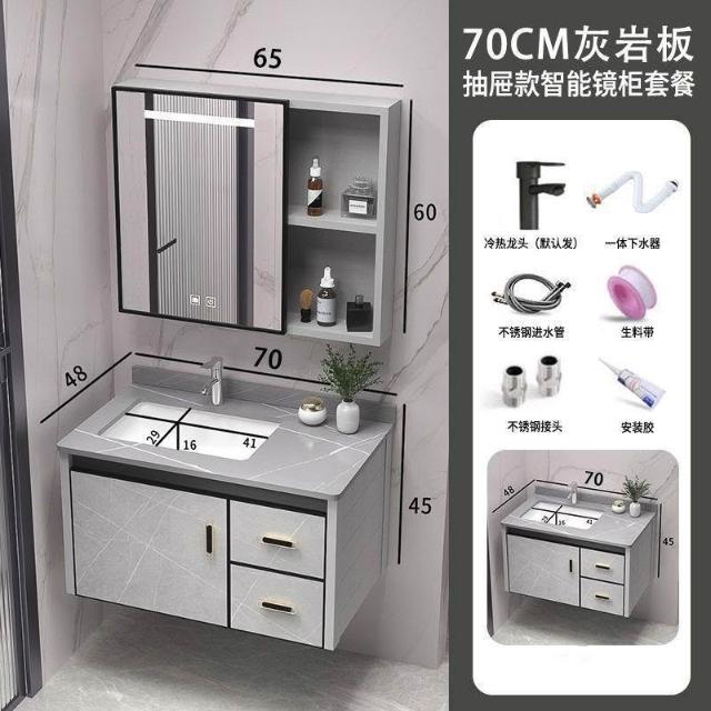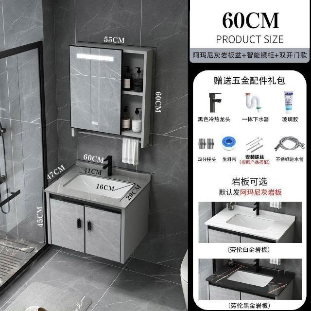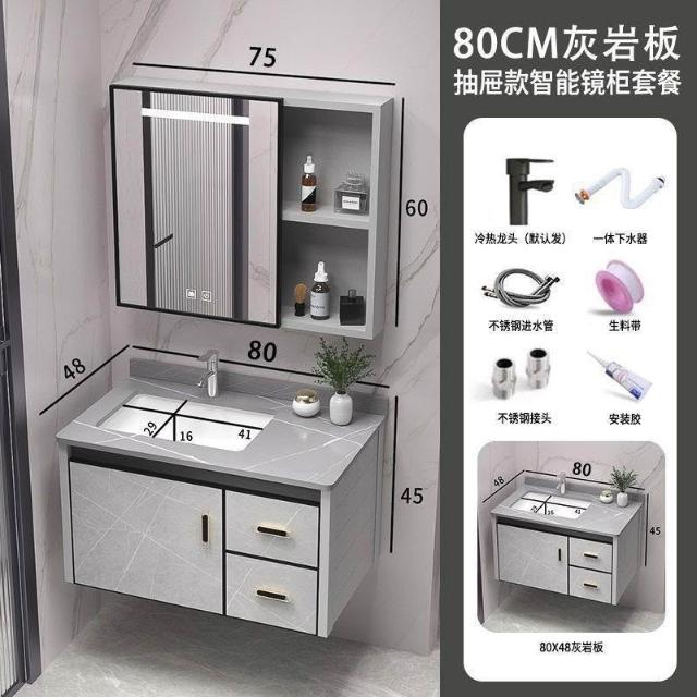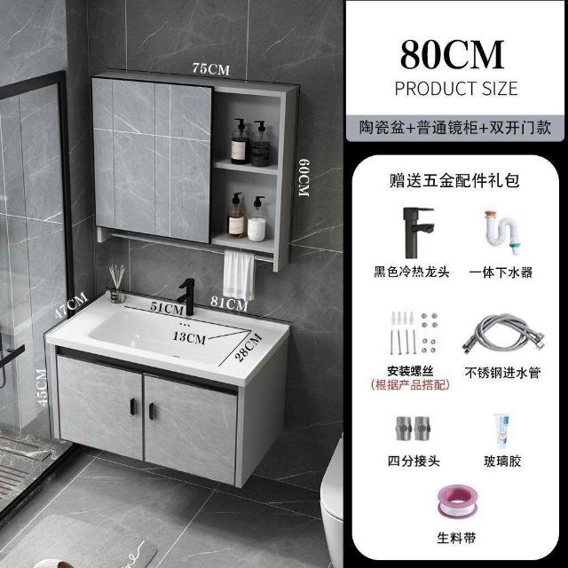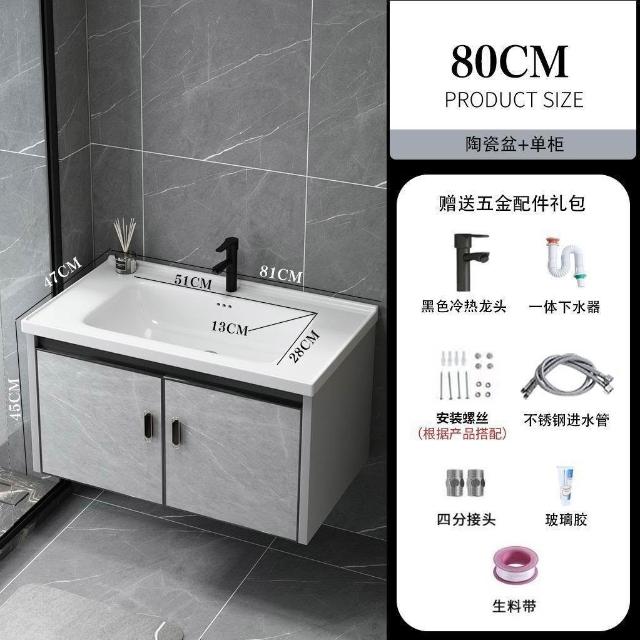 櫻慈太空鋁簡約浴室櫃組合陶瓷岩板一體盆洗漱臺衛生間洗手洗臉池
