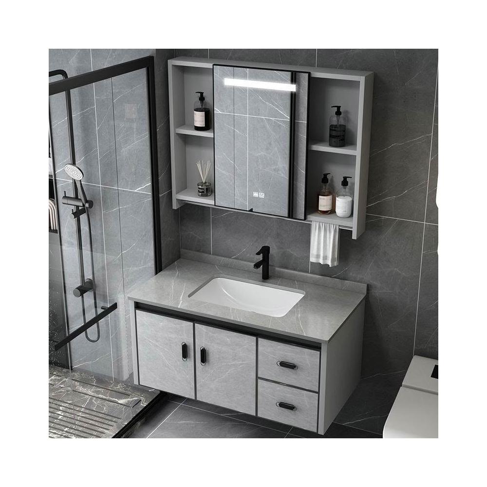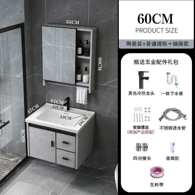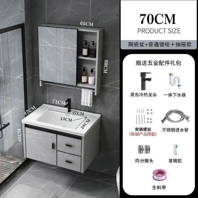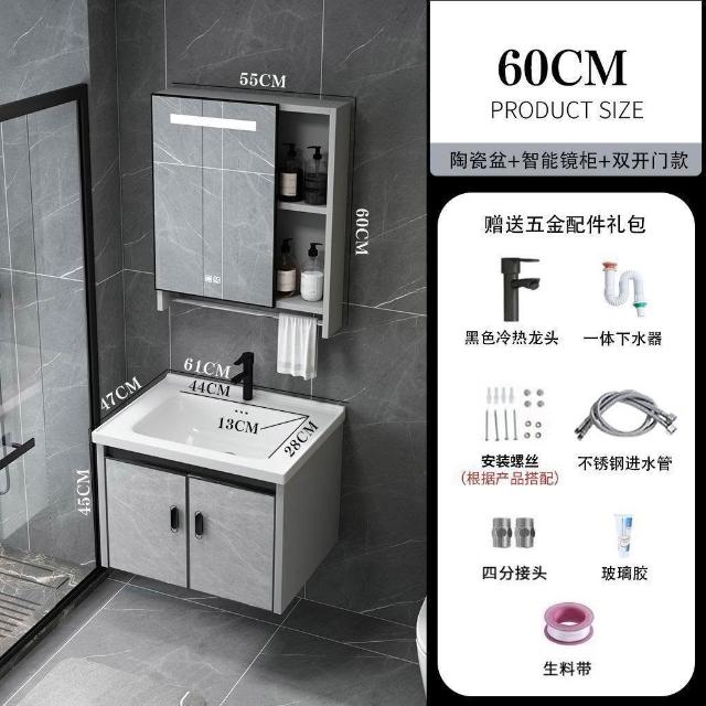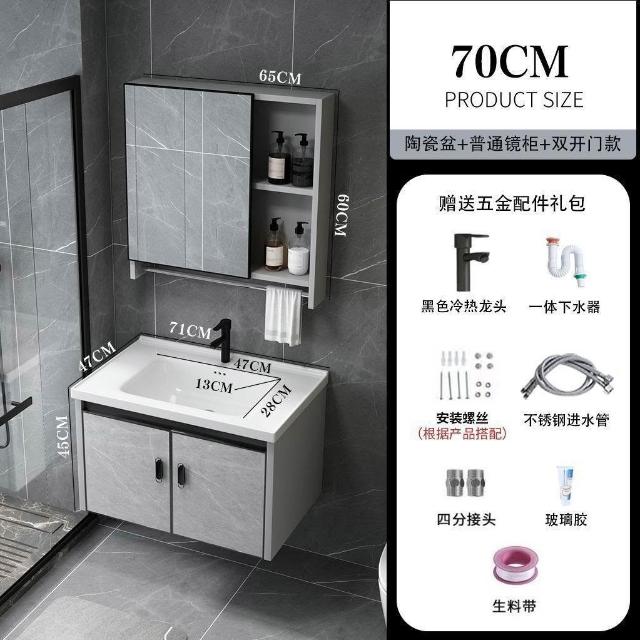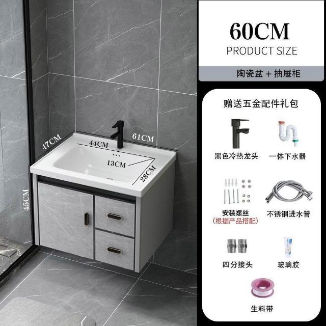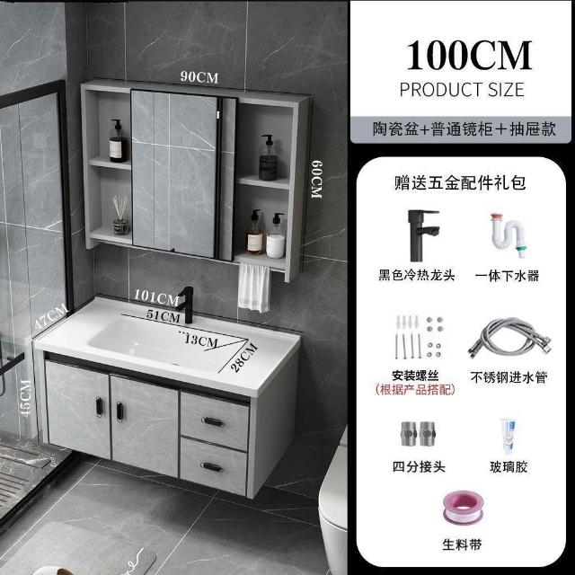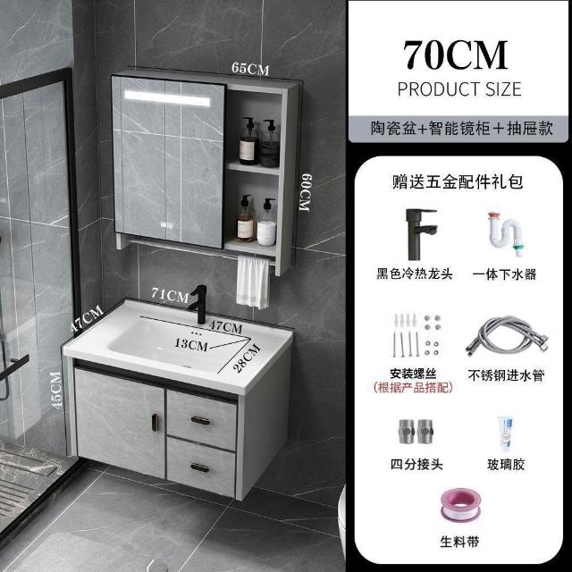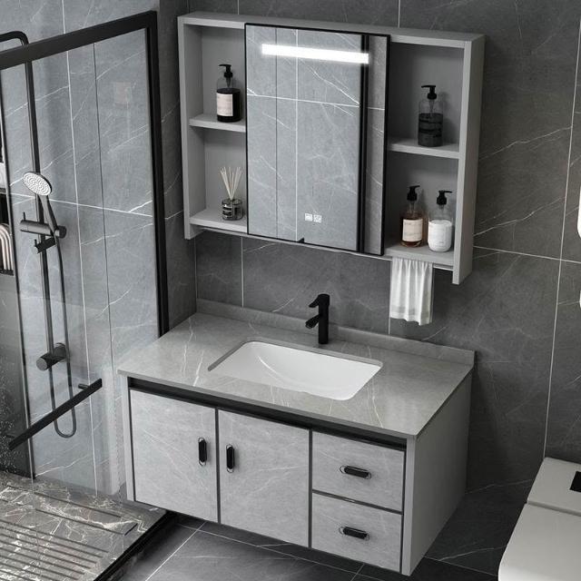 櫻慈太空鋁簡約浴室櫃組合陶瓷岩板一體盆洗漱臺衛生間洗手洗臉池