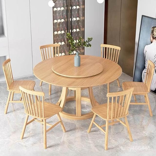 廠家免運 北歐全實木餐桌圓桌1.8m飯桌帶轉盤新中式簡約12人飯店用喫飯大桌