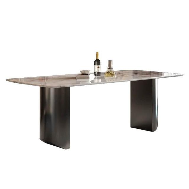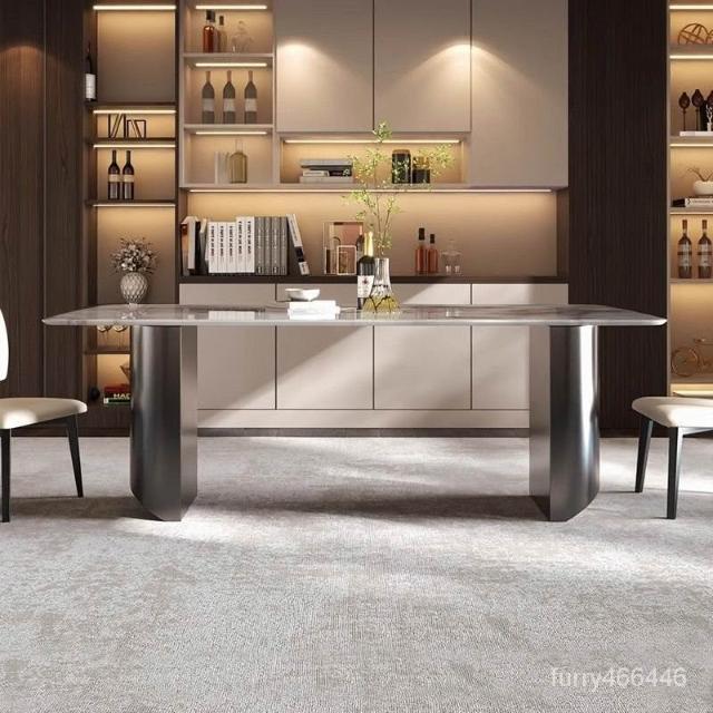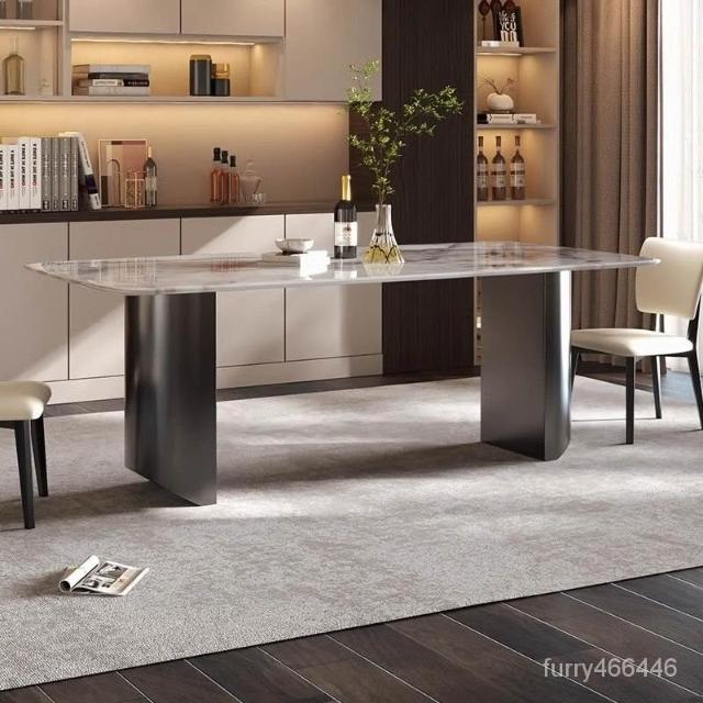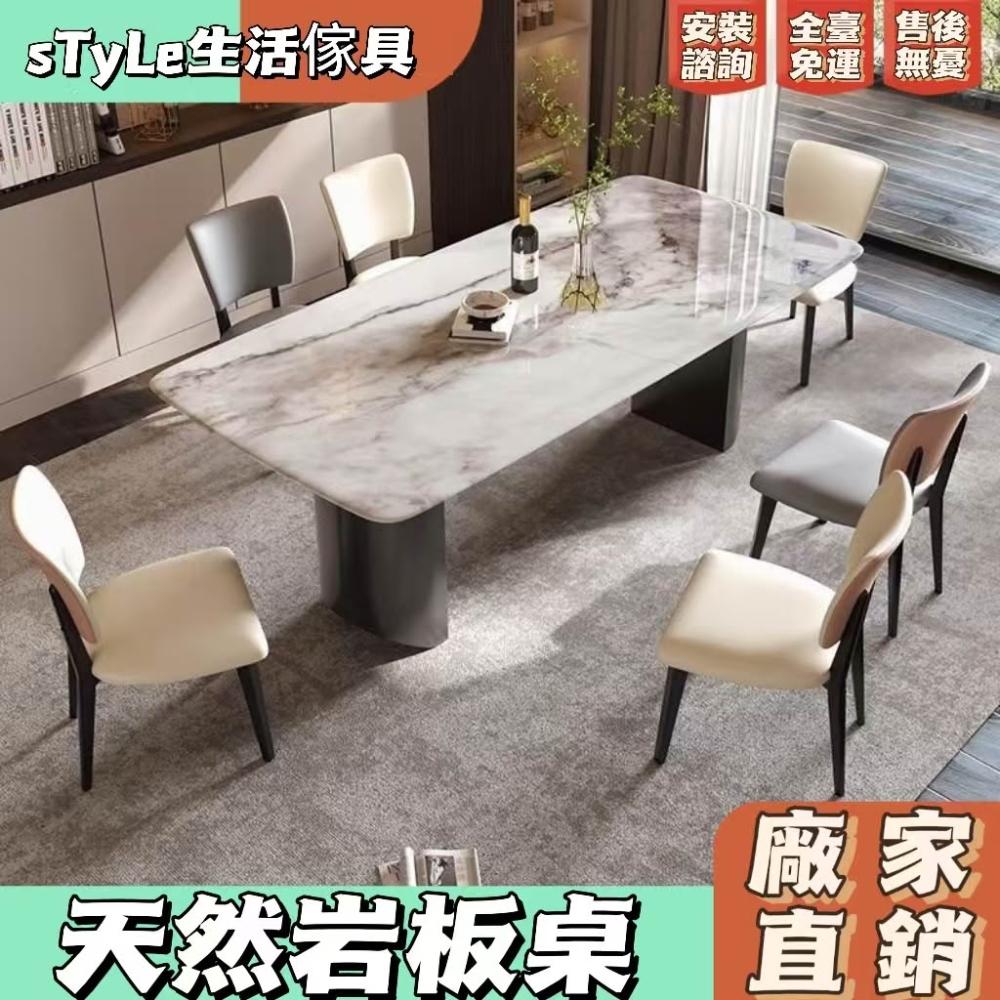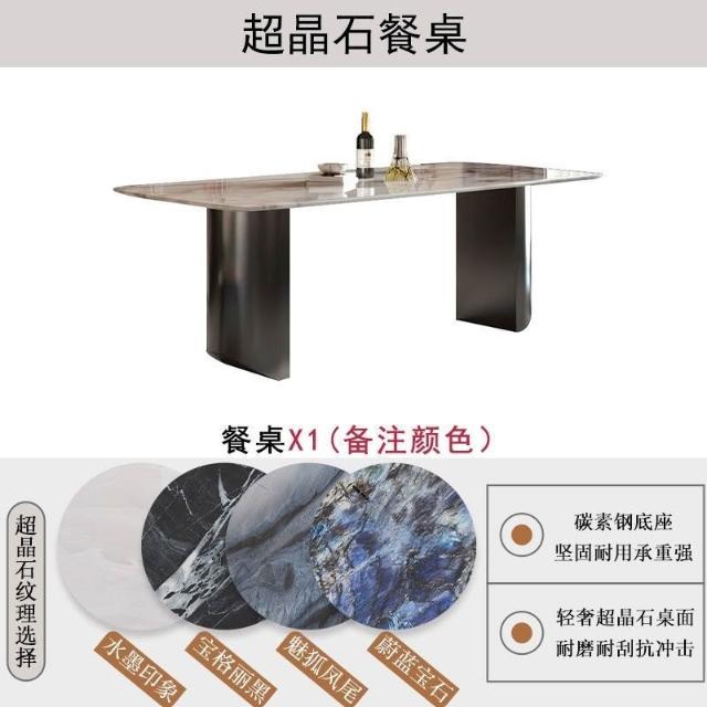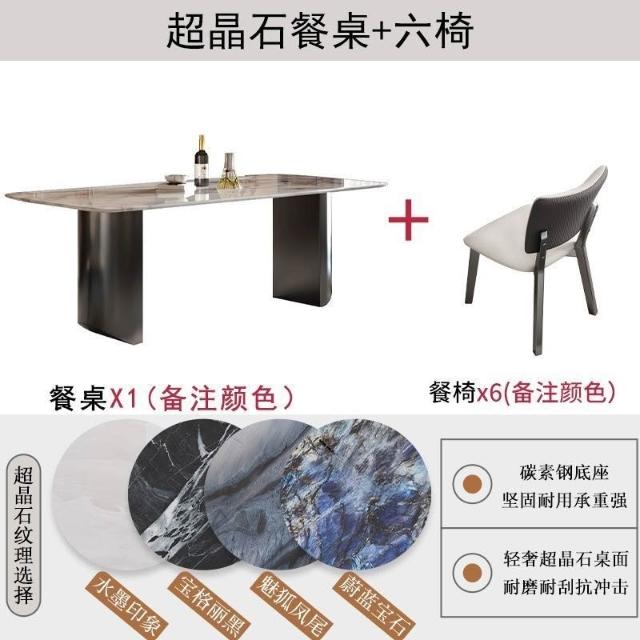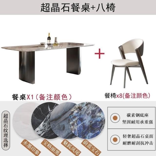 廠家直銷 輕奢風法式餐桌晶石餐桌椅組閤意式極簡長方形客廳大理石飯桌