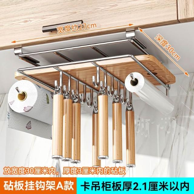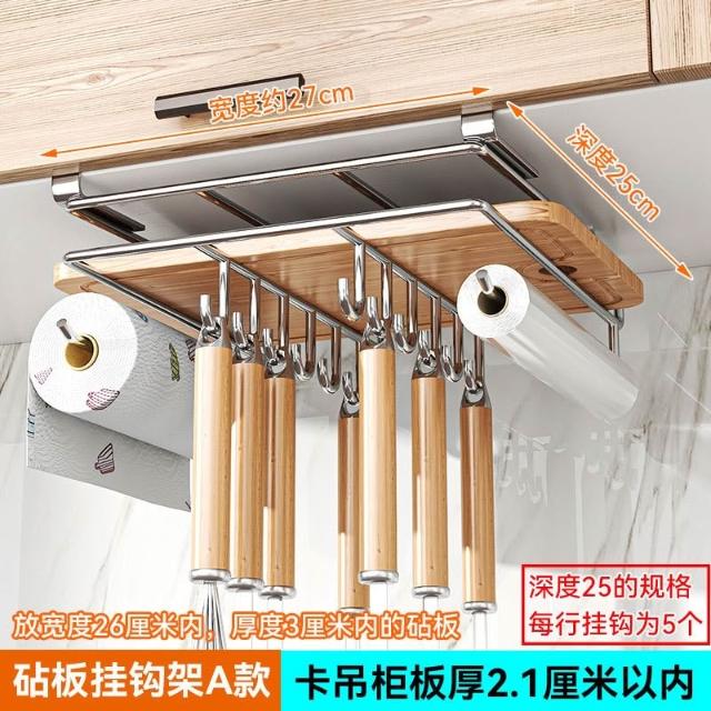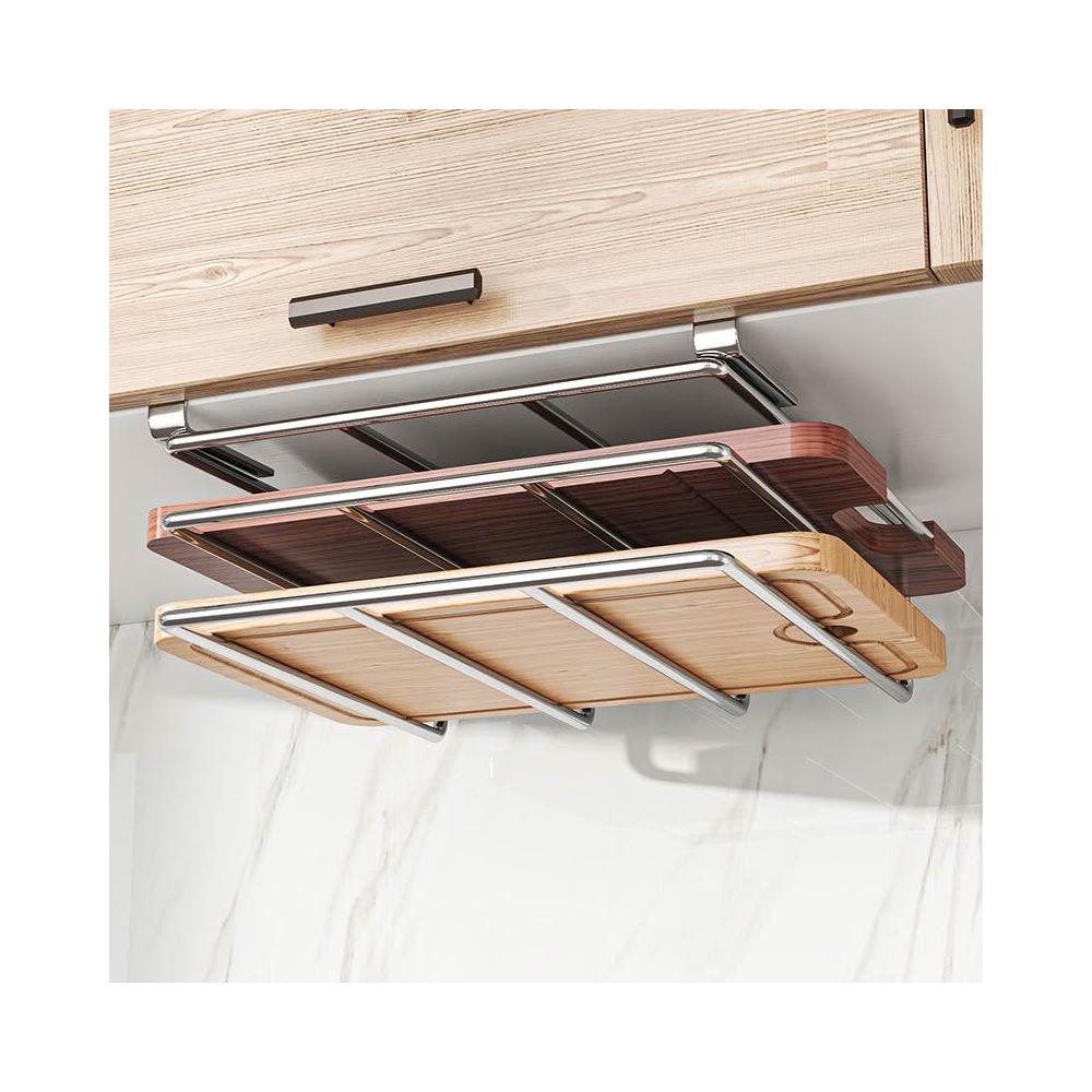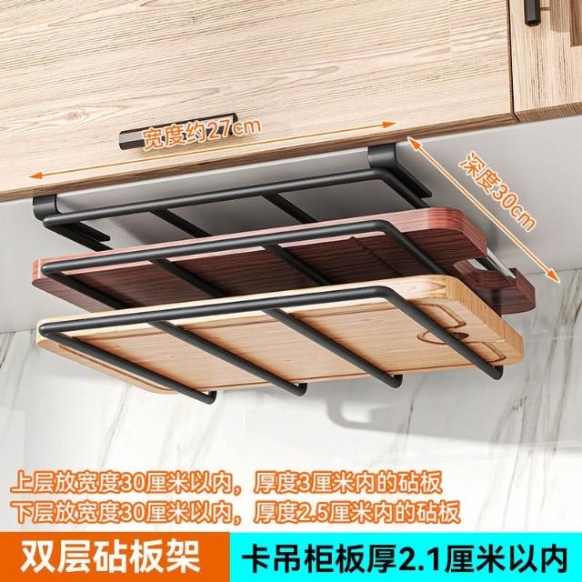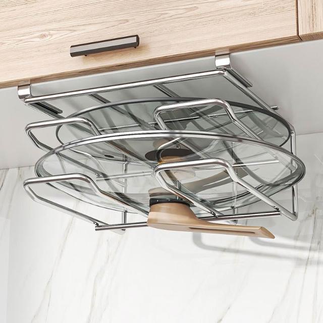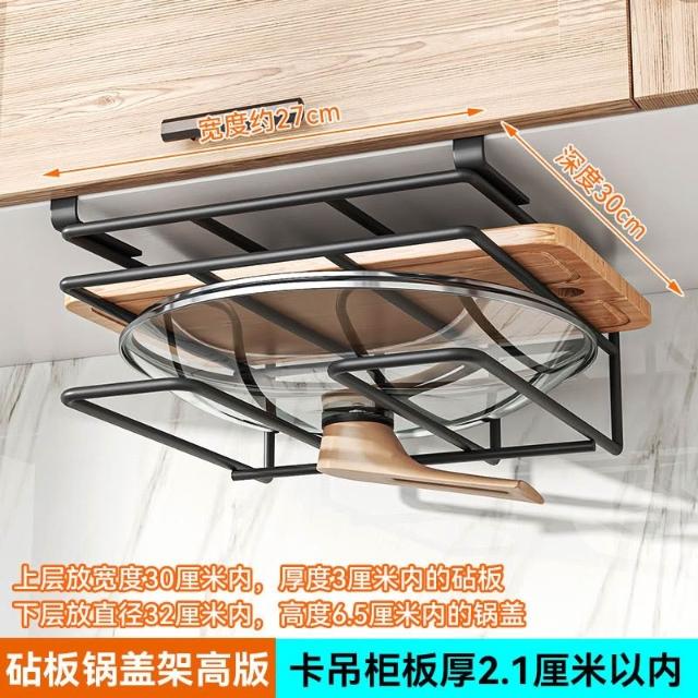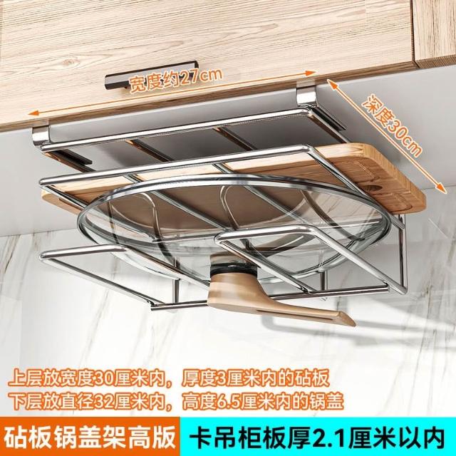 廚房收納置物架 免釘櫥櫃下懸掛架 砧板架 瀝水架 沾板架 304不鏽鋼鍋蓋架雙層 菜板架 案板架 廚房用品收納置物架