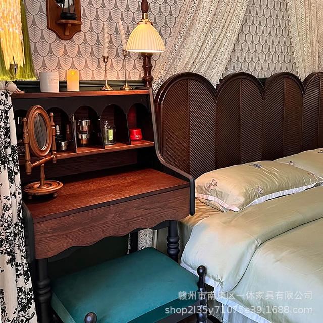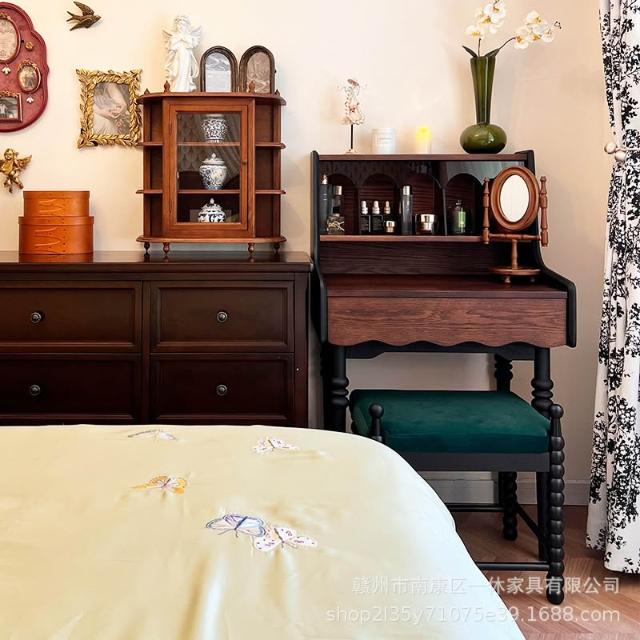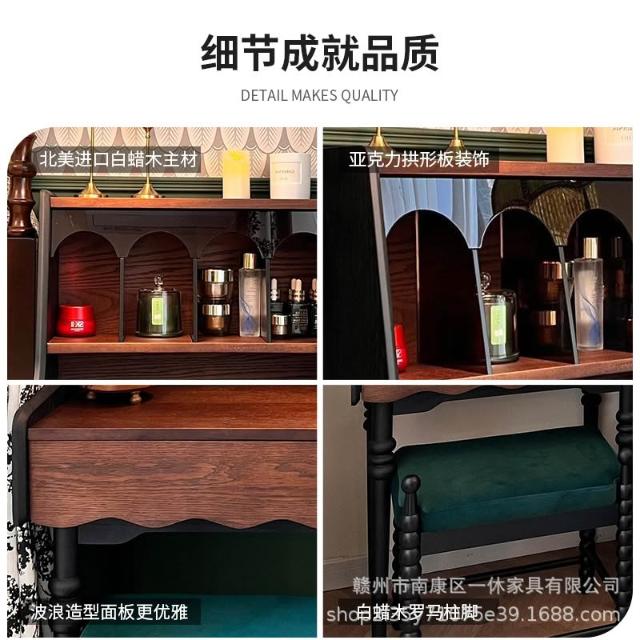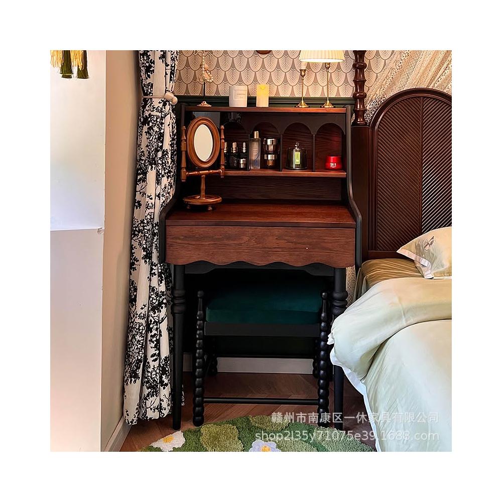 法式復古實木安妮梳粧檯化妝臺美式小戶型臥室傢俱中古風化妝桌