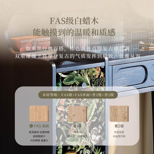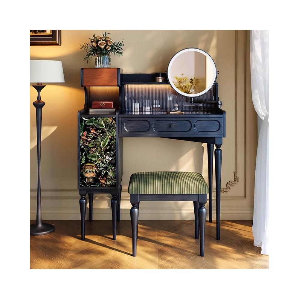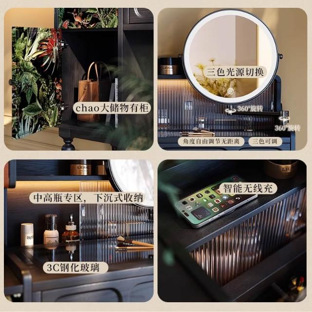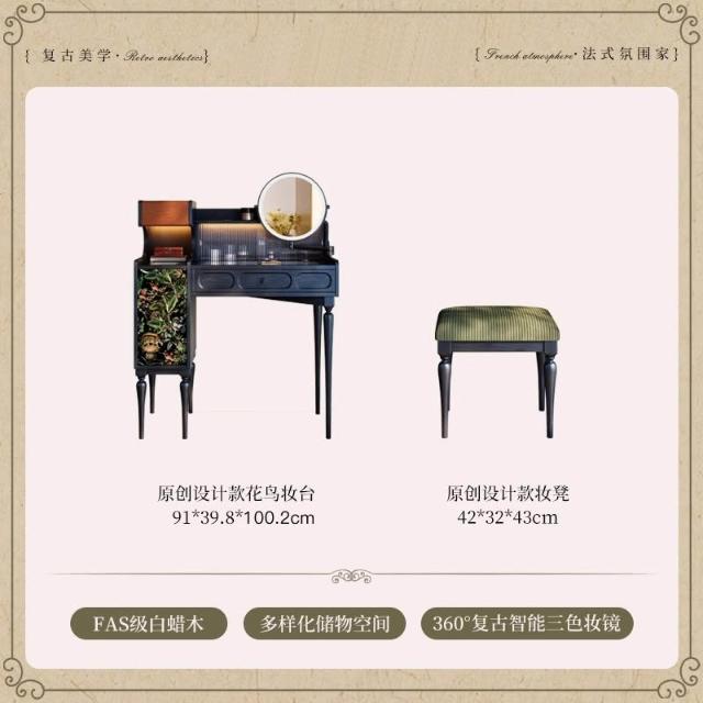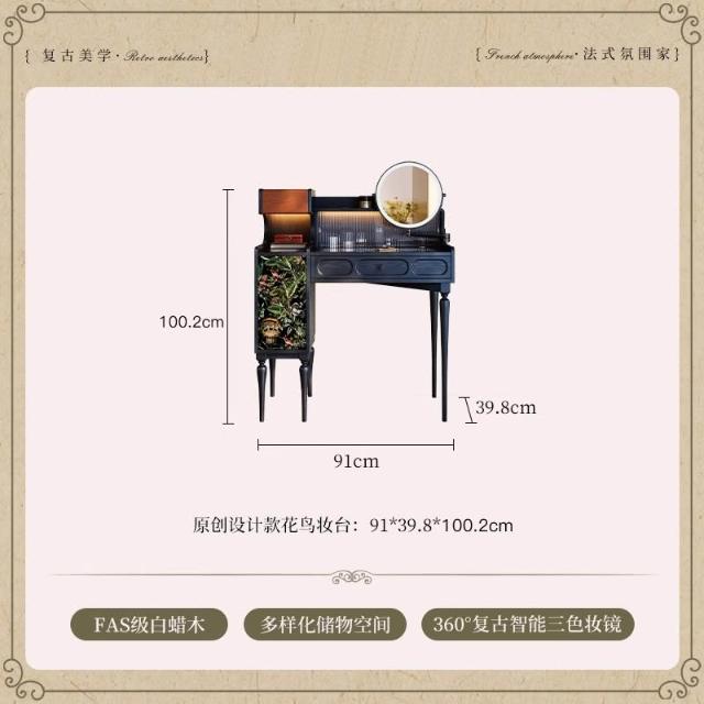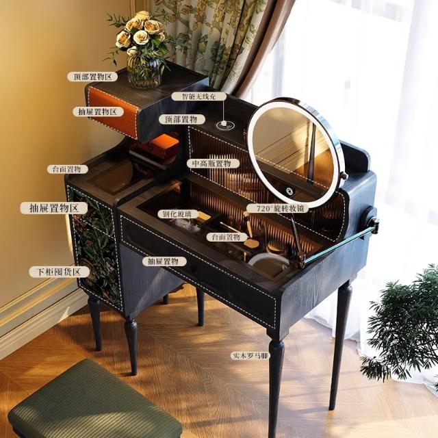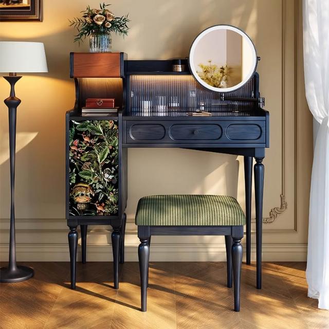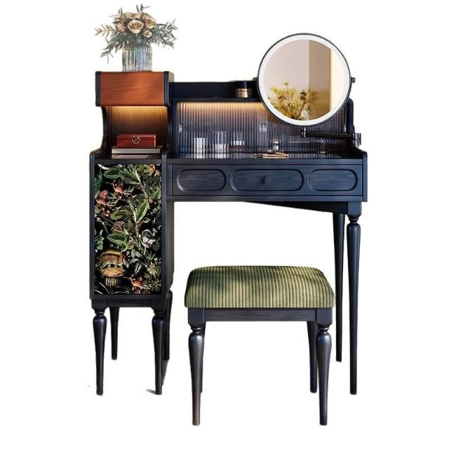 法式復古梳粧檯小戶型主臥黑色實木梳妝臺高級感中古收納化妝桌