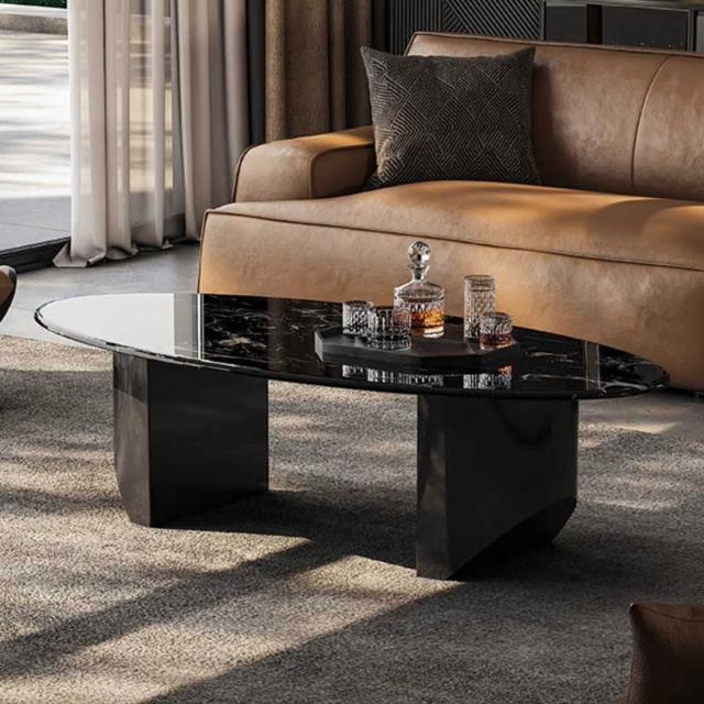 大理石茶几天然奢石黑玫瑰輕奢高級感橢圓形懸浮茶桌客廳家用新款