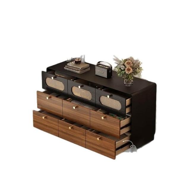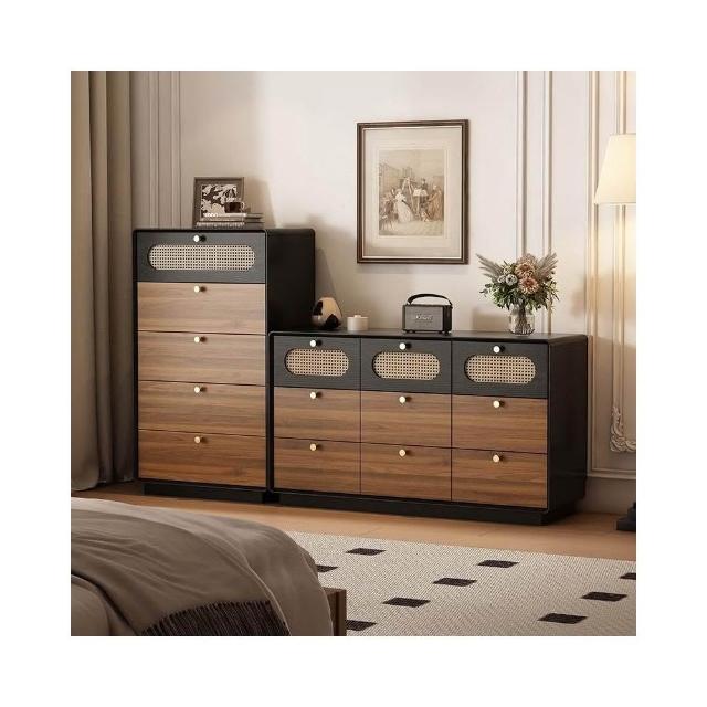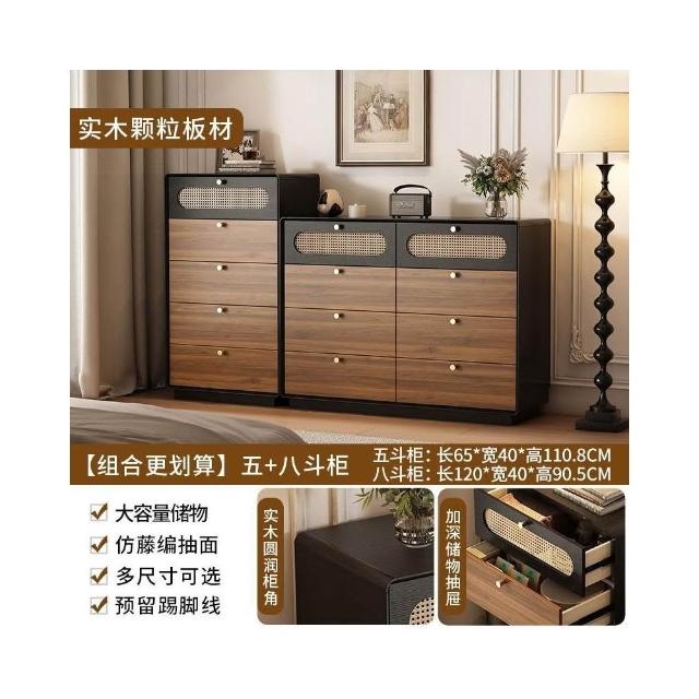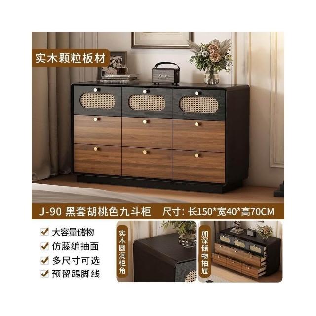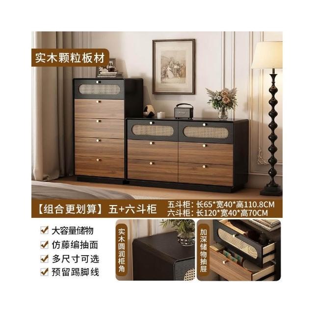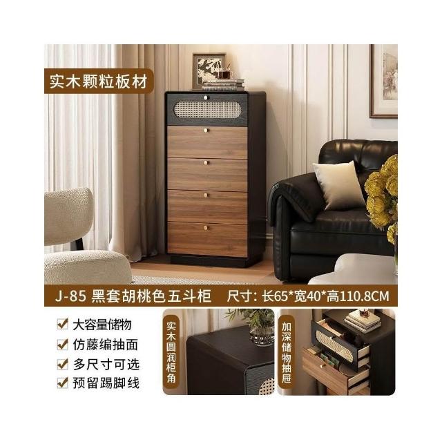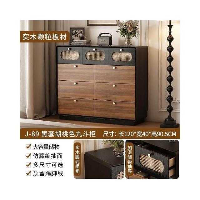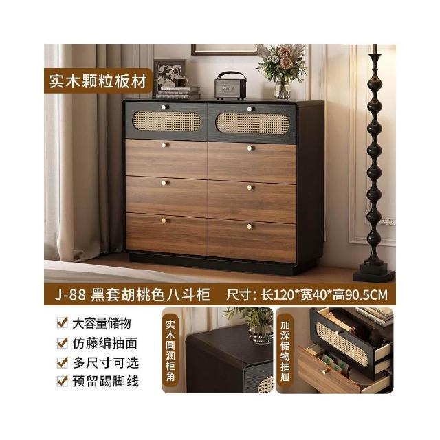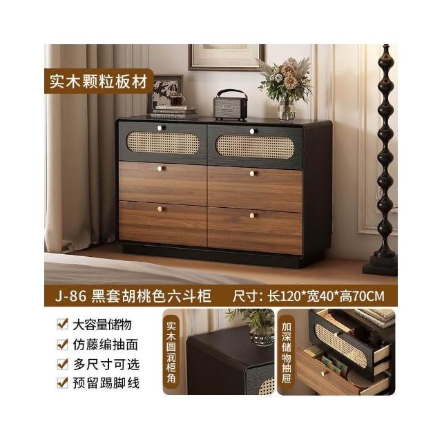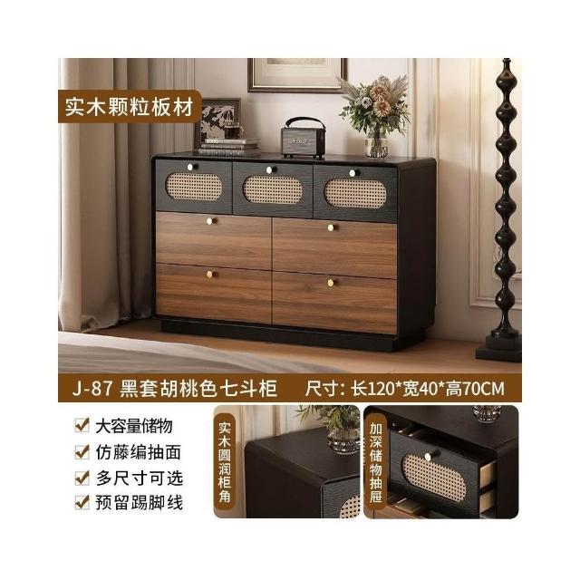 北美鬥櫃臥室床尾櫃復古中古風床頭邊櫃胡桃木色客廳收納櫃五斗櫃