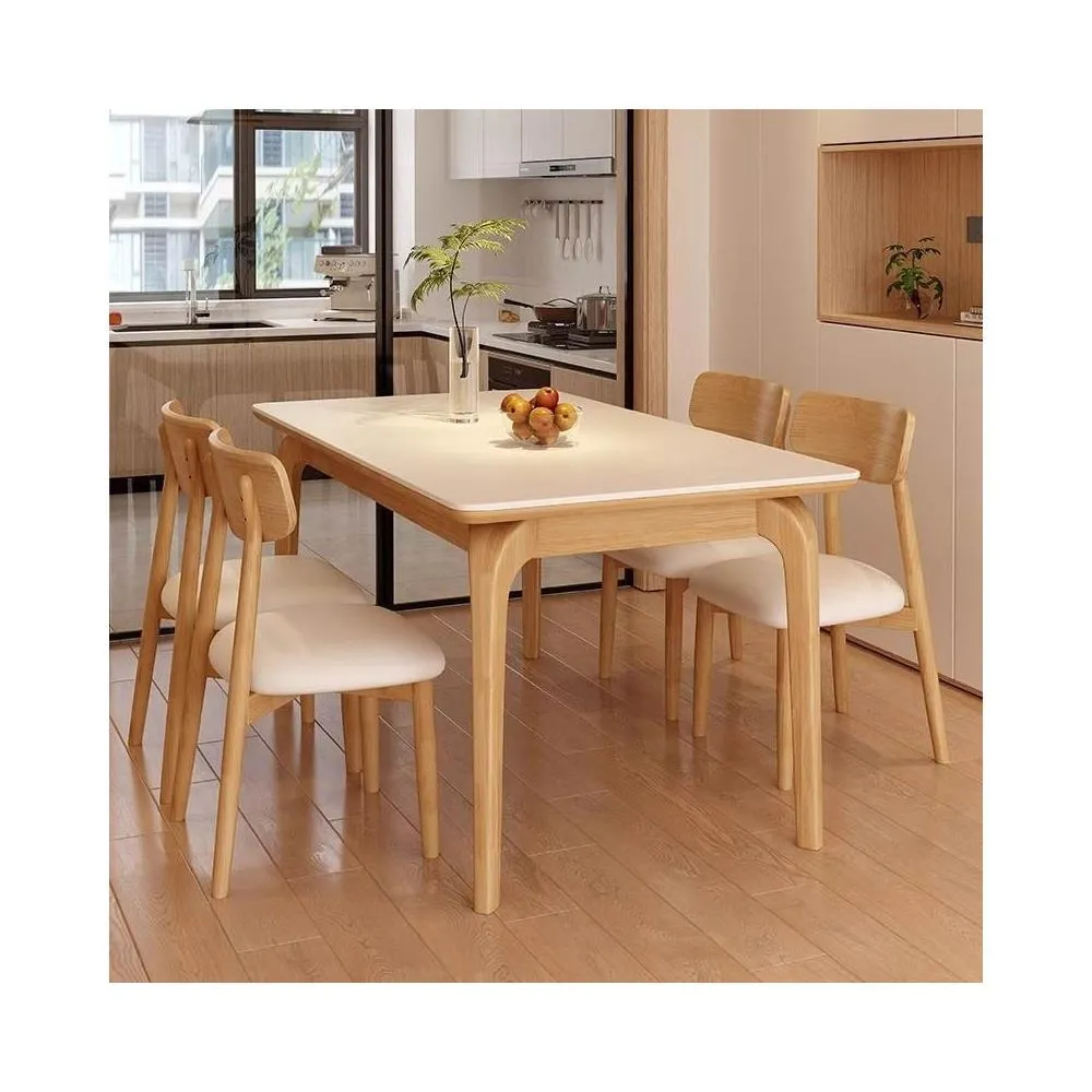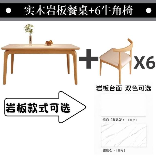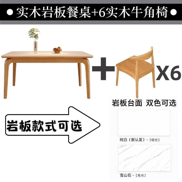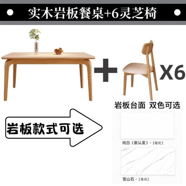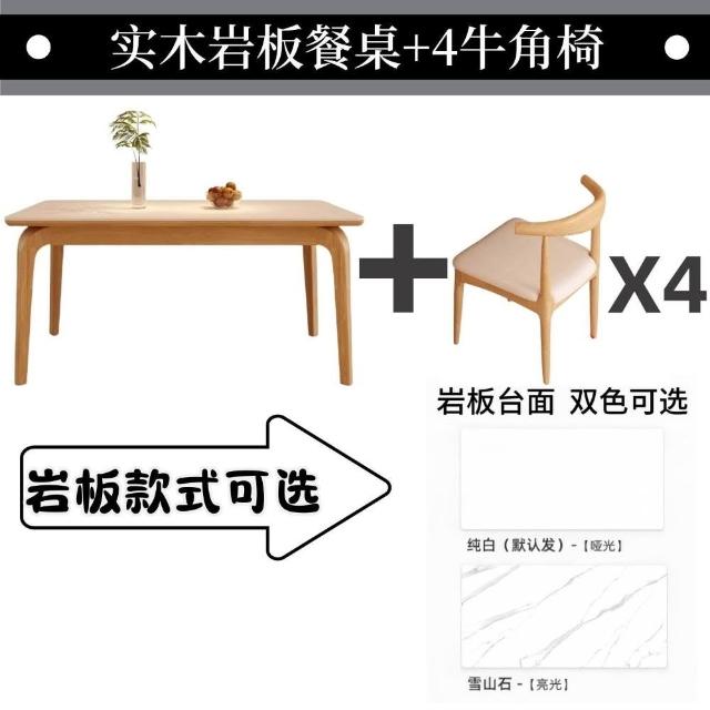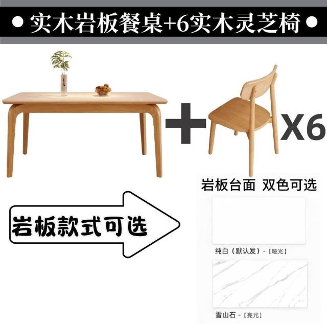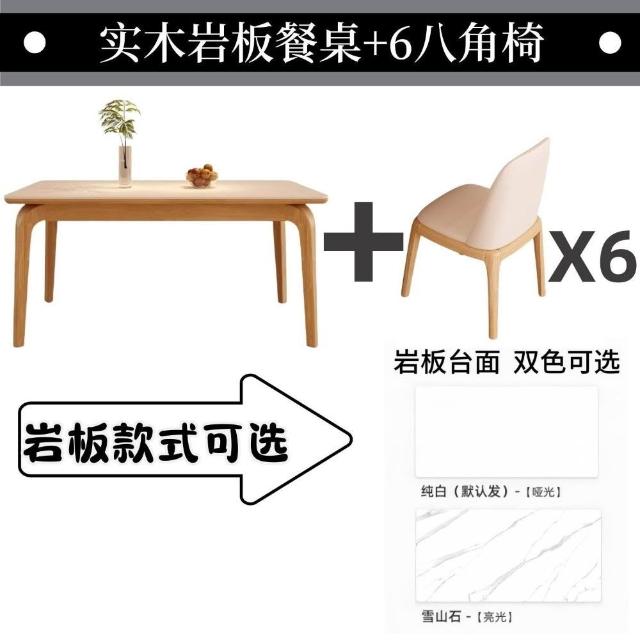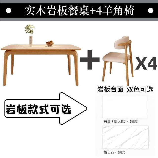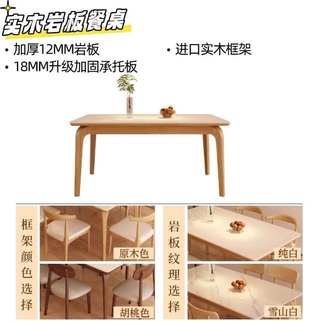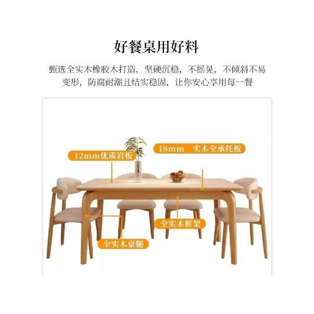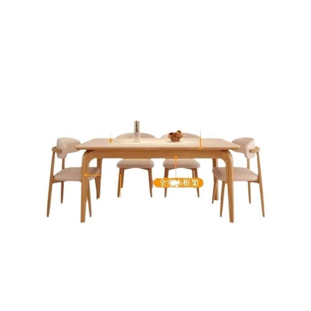 全托實木岩板餐桌椅2024新款家用小戶型原木奶油風長方形餐桌3
