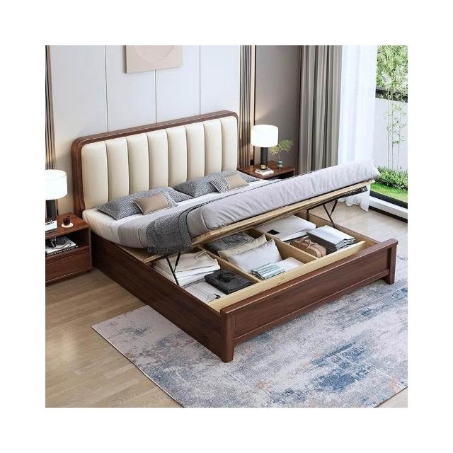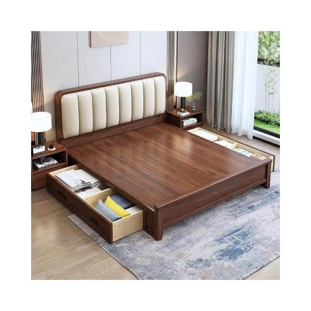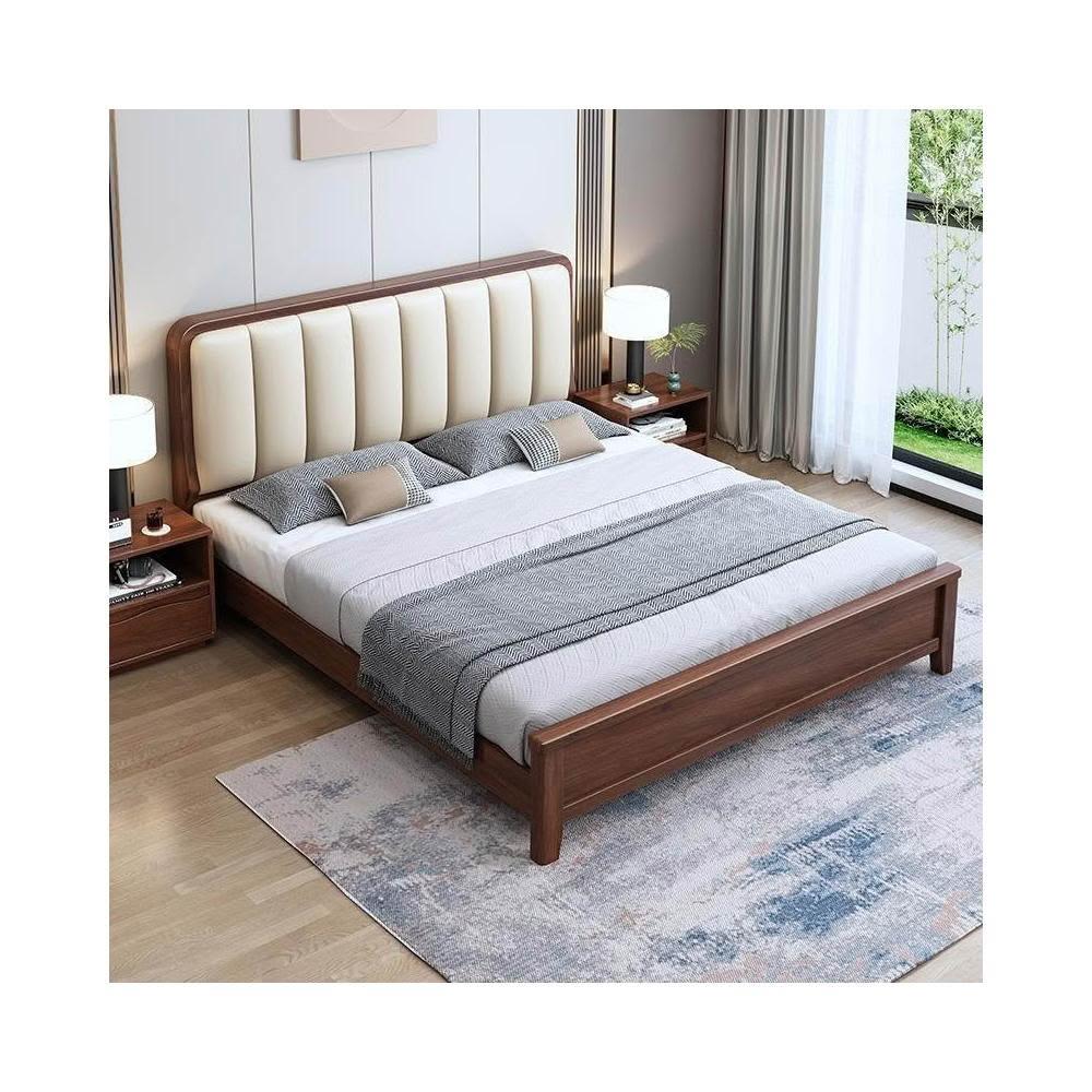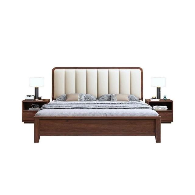 北欧胡桃木实木床现代简约1.5米软靠背床大小户型1.8米储物双人床LU
