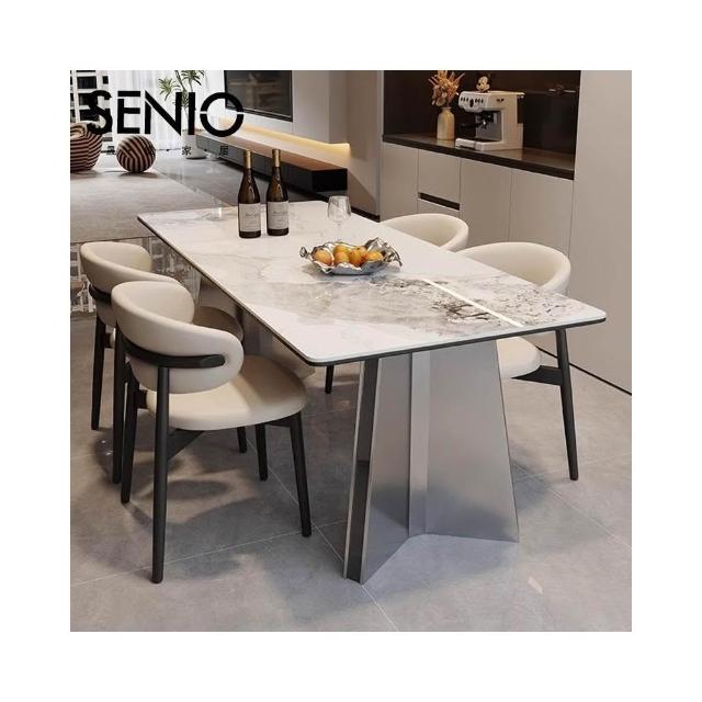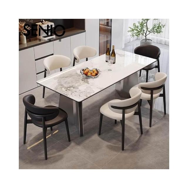 意式極簡岩板餐桌椅組合家用飯桌小戶型現代簡約輕奢長方形餐桌椅SD