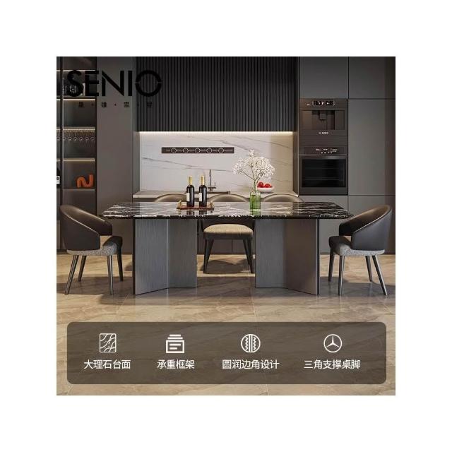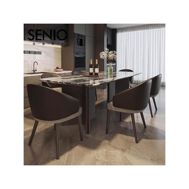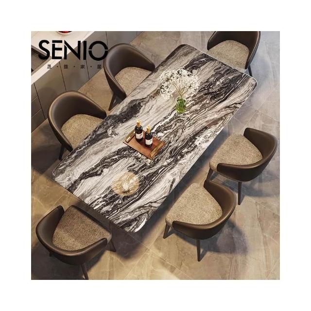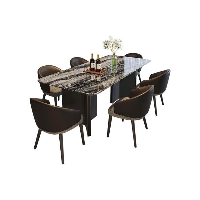 輕奢大理石餐桌威尼斯棕奢石花紋簡約小戶型餐廳餐桌椅組合吃飯桌SD