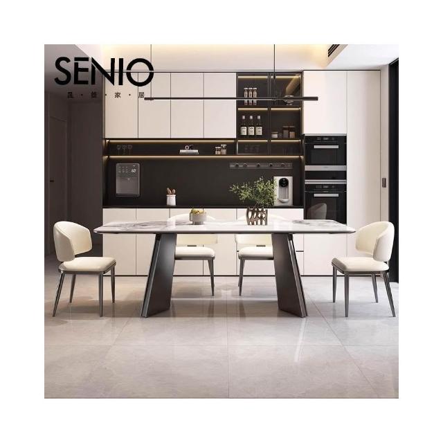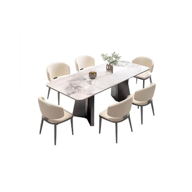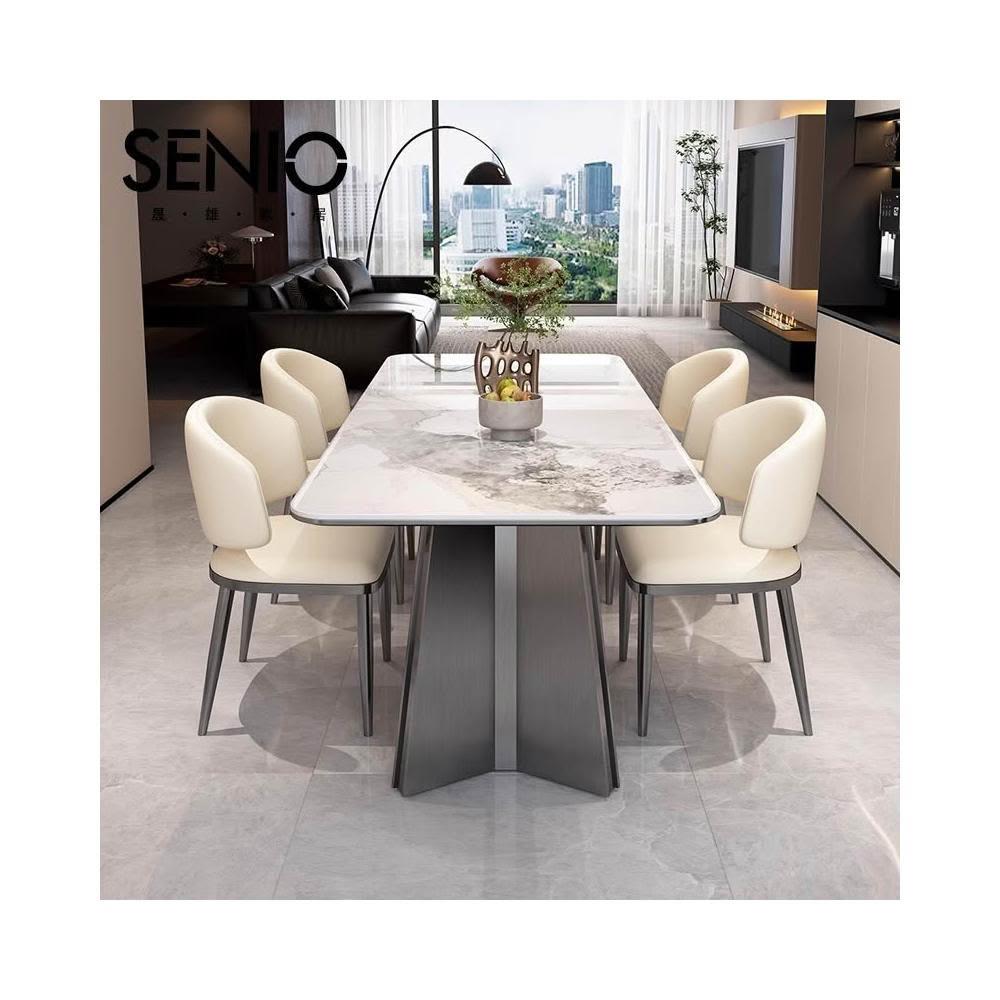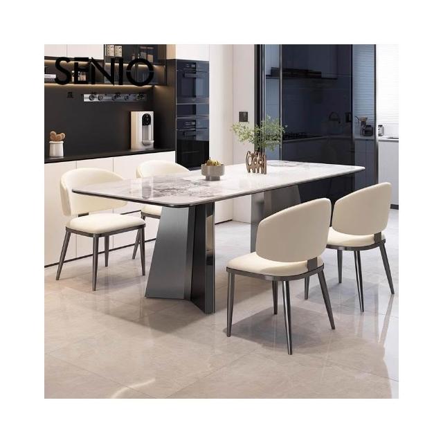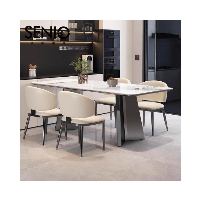 輕奢岩板餐桌意式極簡長方形家用餐桌椅組合小戶型不銹鋼吃飯桌子SD