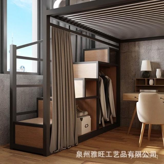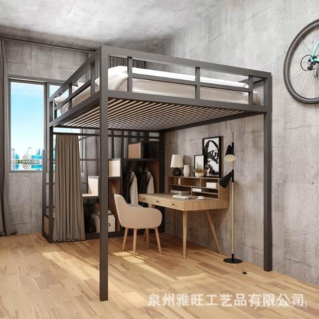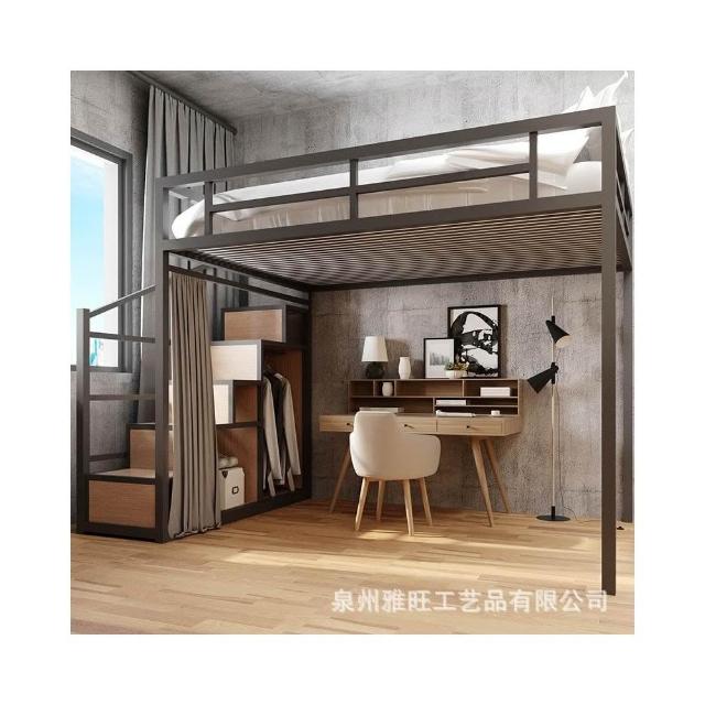 現代簡約鐵藝床家用臥室省空間單上層高架床小戶型公寓閣樓鐵架床