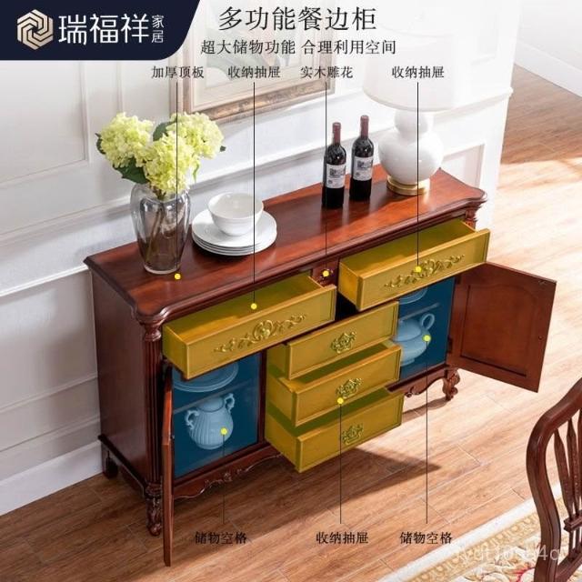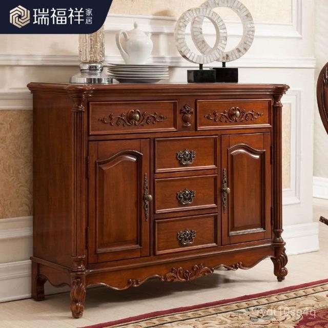 美式複古餐邊櫃實木玄關碗櫃歐式儲物收納櫃整裝工廠直銷可定製