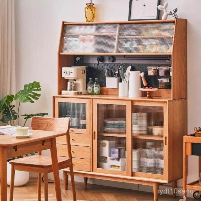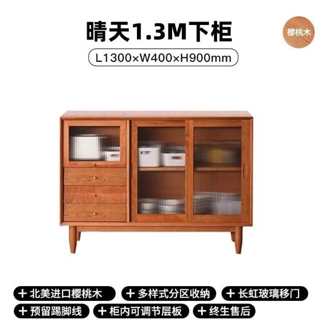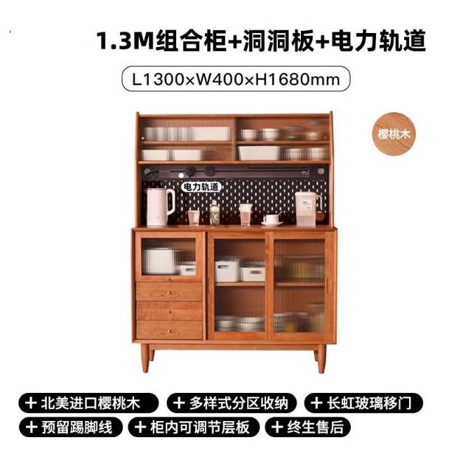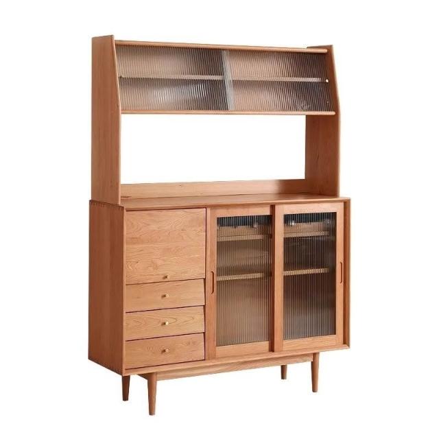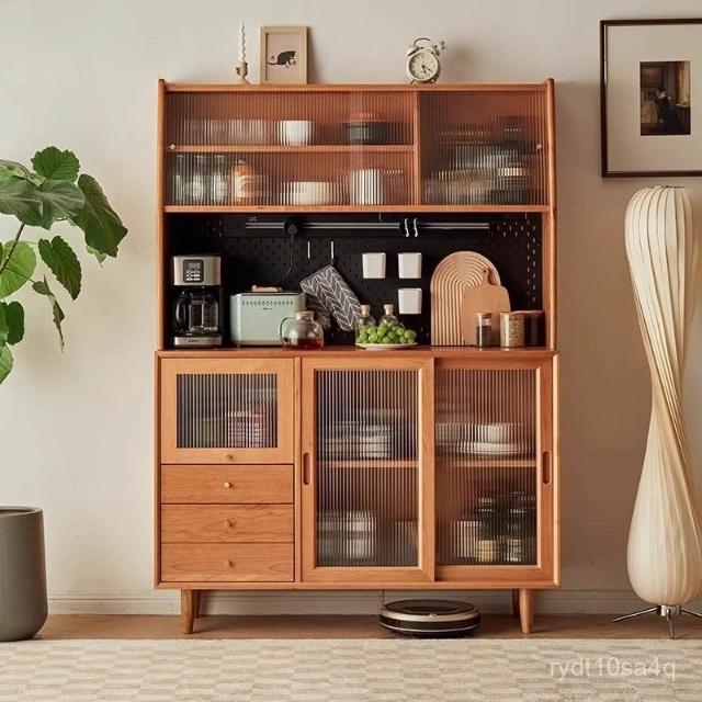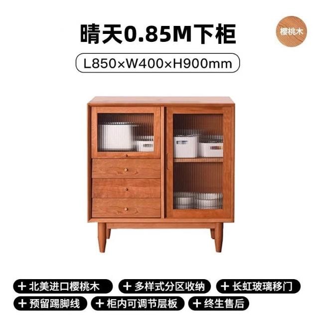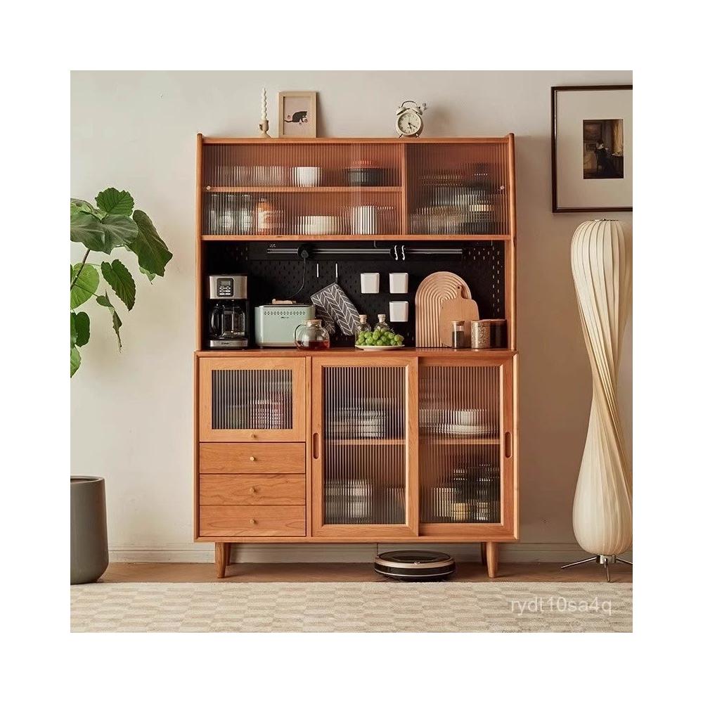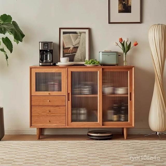 北歐櫻桃木客廳餐邊櫃落地儲物櫃餐廳實木現代簡約廚房碗櫃家具