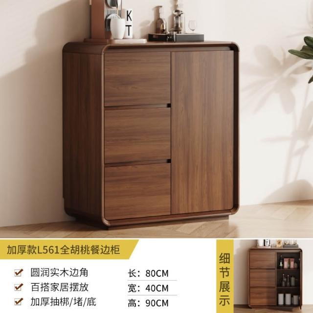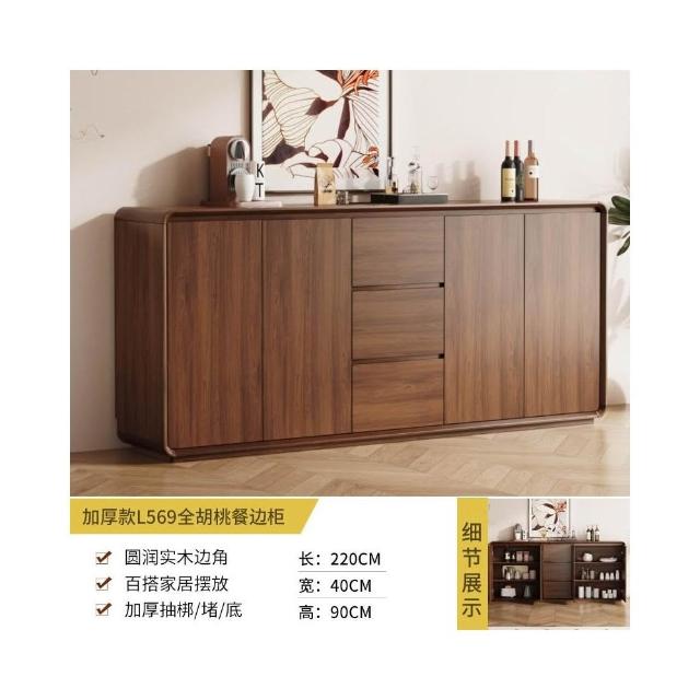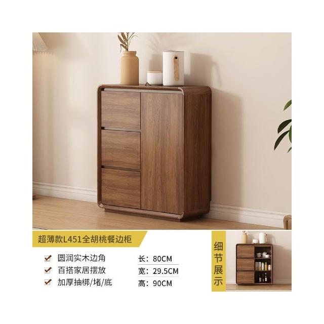 北歐餐邊櫃靠墻一體廚房儲物櫃實木新中式超薄客廳衚桃木色收納櫃