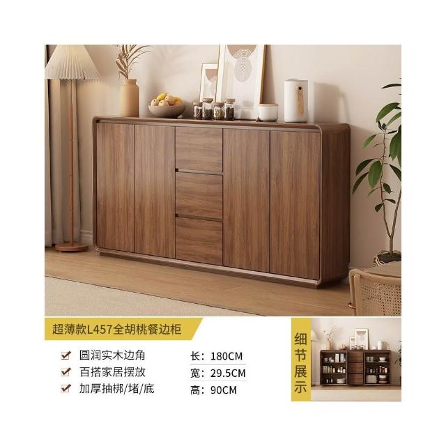 北歐餐邊櫃靠墻一體廚房儲物櫃實木新中式超薄客廳衚桃木色收納櫃