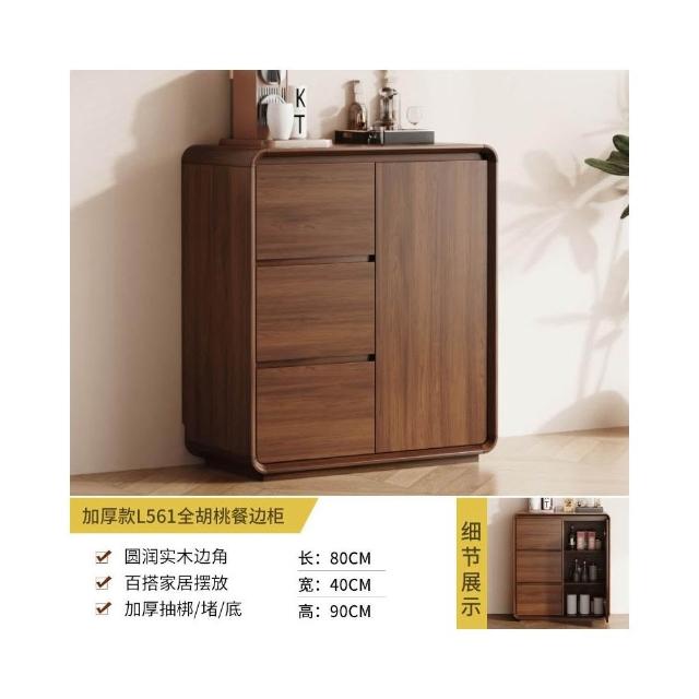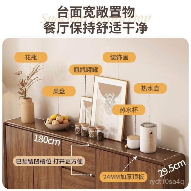北歐餐邊櫃靠墻一體廚房儲物櫃實木新中式超薄客廳衚桃木色收納櫃