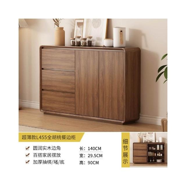 北歐餐邊櫃靠墻一體廚房儲物櫃實木新中式超薄客廳衚桃木色收納櫃