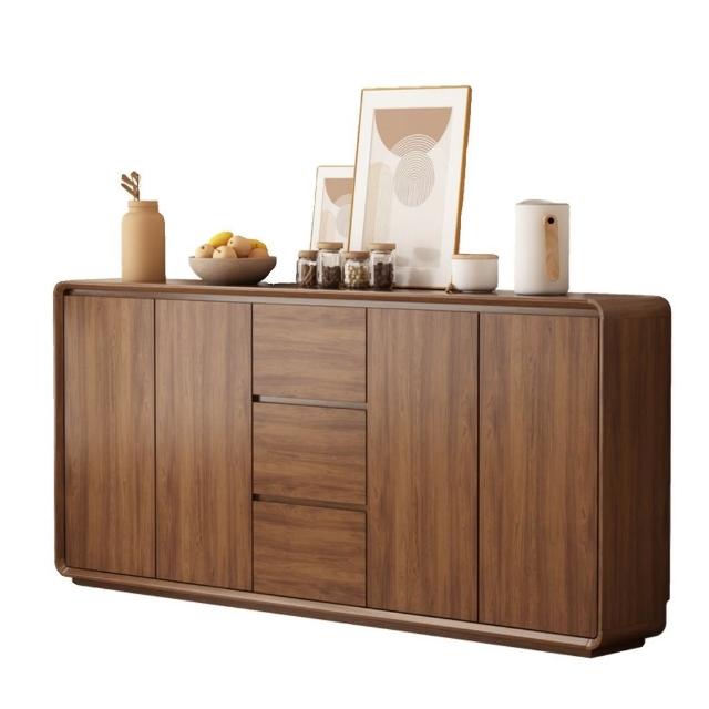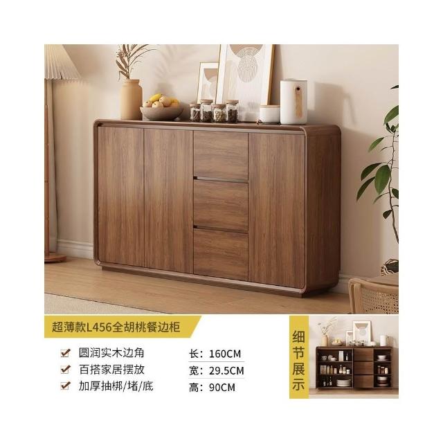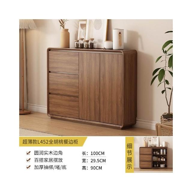 北歐餐邊櫃靠墻一體廚房儲物櫃實木新中式超薄客廳衚桃木色收納櫃
