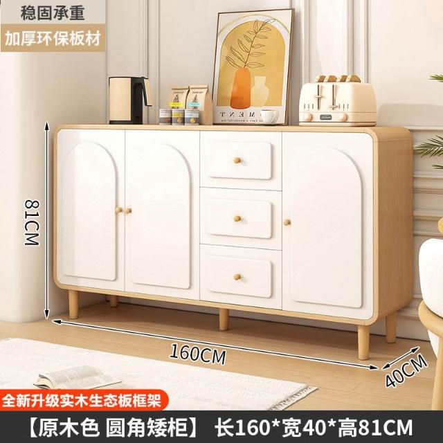原木奶油風餐邊櫃靠墻一體置物櫃廚房客餐廳多功能儲物收納櫃實木