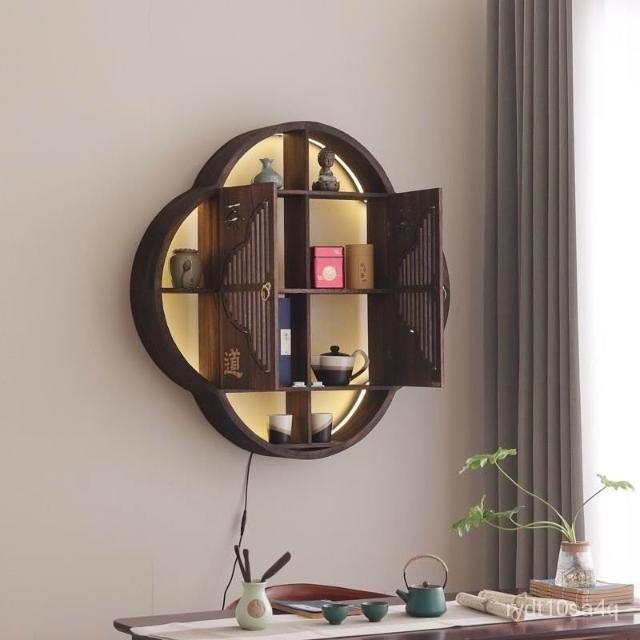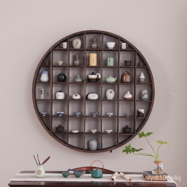 實木多寶閣墻上博古架茶杯茶具收納置物架中式複古格子壁掛展示架20