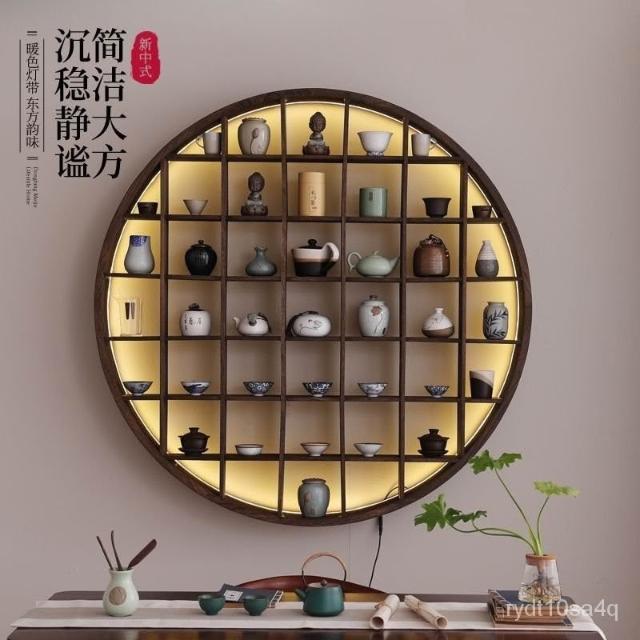 實木多寶閣墻上博古架茶杯茶具收納置物架中式複古格子壁掛展示架20
