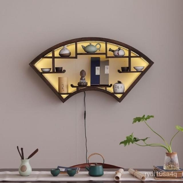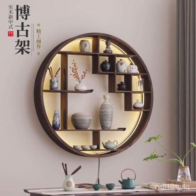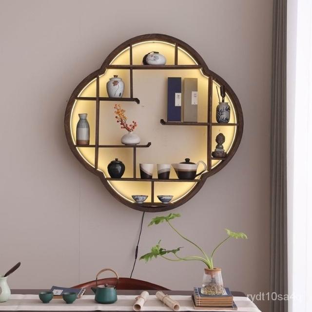 實木多寶閣墻上博古架茶杯茶具收納置物架中式複古格子壁掛展示架20