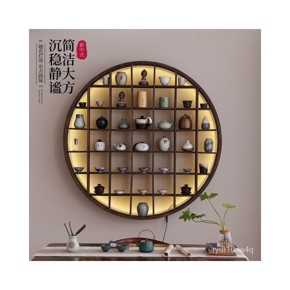 實木多寶閣墻上博古架茶杯茶具收納置物架中式複古格子壁掛展示架20