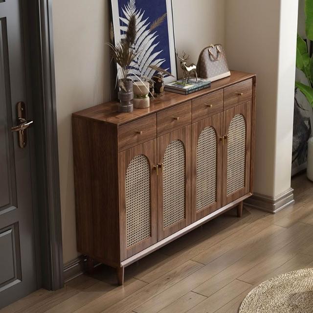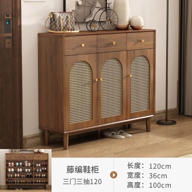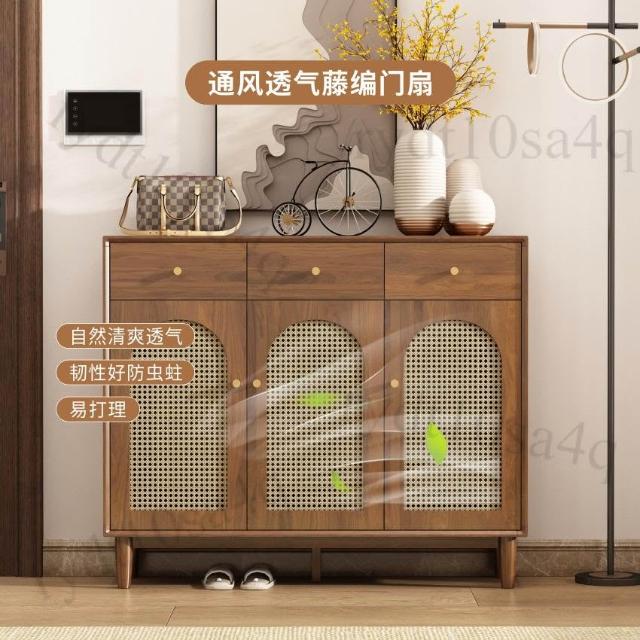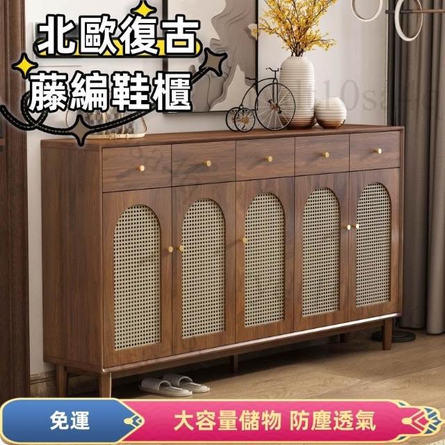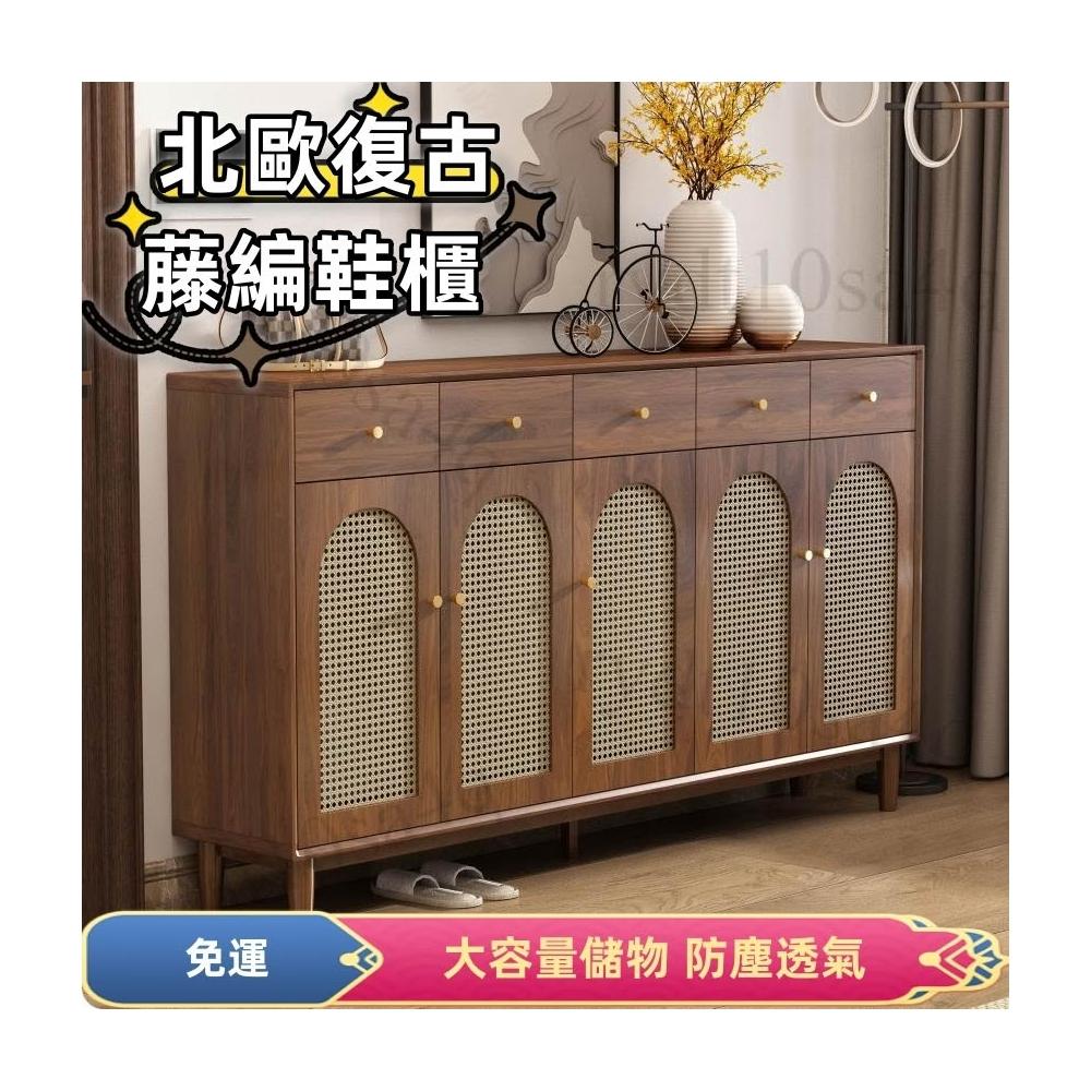 免運 廠家直銷復古藤編櫃門鞋櫃家用門口簡約入戶玄關櫃輕奢時尚客廳儲物收納櫃 玄關櫃 藤編鞋櫃 收納櫃 陽台儲物櫃