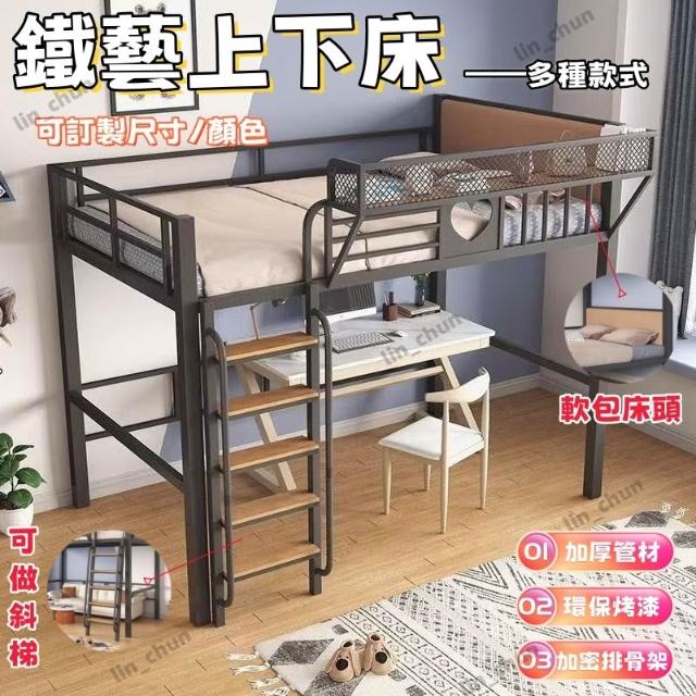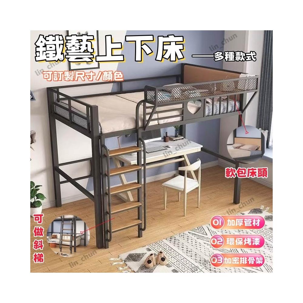高架床 上下床 高低床 復式二樓床 上下鋪 上床下桌 雙層床 公寓床 單人床架 閣樓床 小戶型 加厚鐵藝床