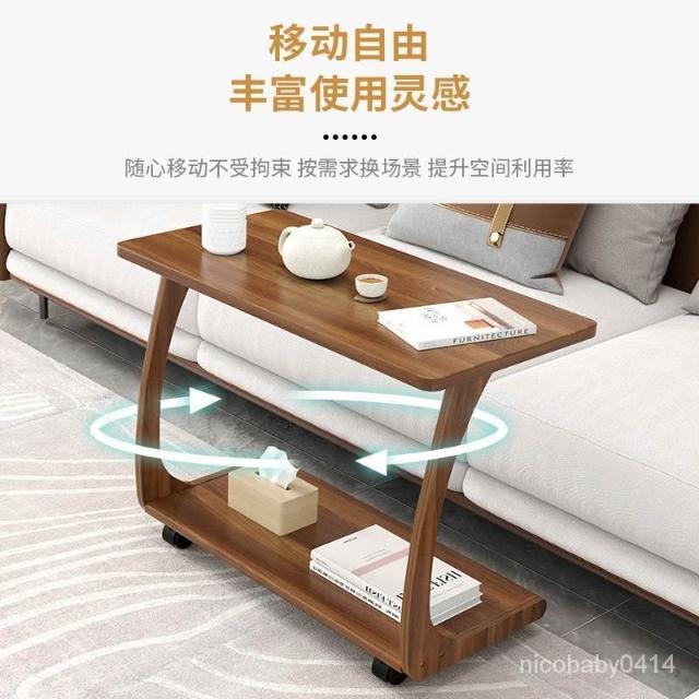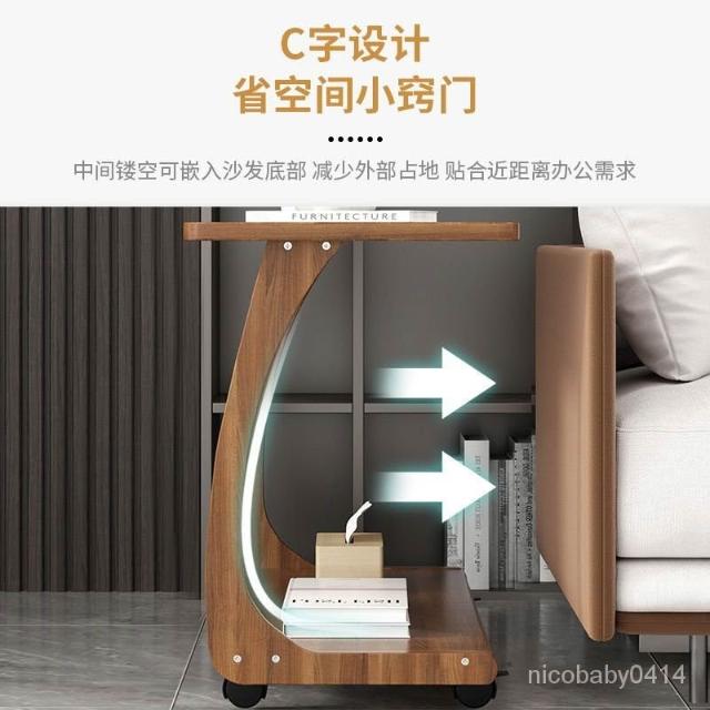 茶几 邊桌 小桌子 邊幾 實木沙髮邊幾櫃 可移動桌子 帶輪迷你茶幾 客廳小戶型 C型方角幾茶臺