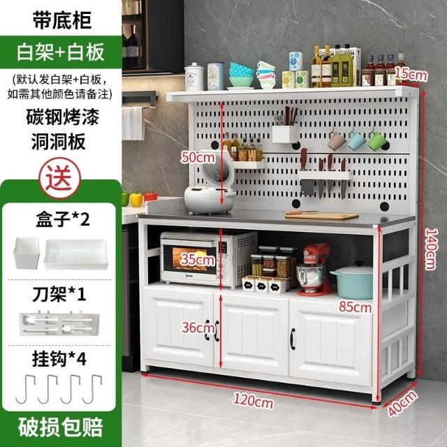 凱莎優選 免稅洞洞闆置物架廚房不銹鋼操作臺切菜桌落地多層儲物架微波爐餐邊櫃 置物櫃 收納櫃 碗