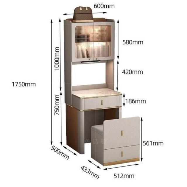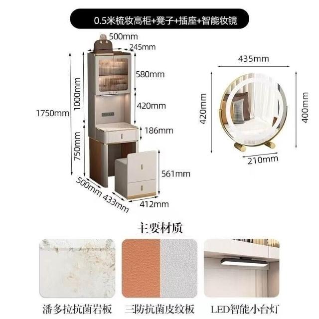 凱莎優選 工廠⭕促銷~梳妝臺臥室小戶型迷你梳妝臺高櫃帶凳子收納櫃一體床頭櫃化妝桌 XAPV