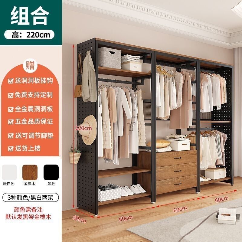 凱莎優選 可付費到府安裝 免運 開發票步入式衣帽間開放式衣櫃家用臥室金屬衣櫃組閤架子加固掛衣架落地 開放式衣帽架 洞洞板