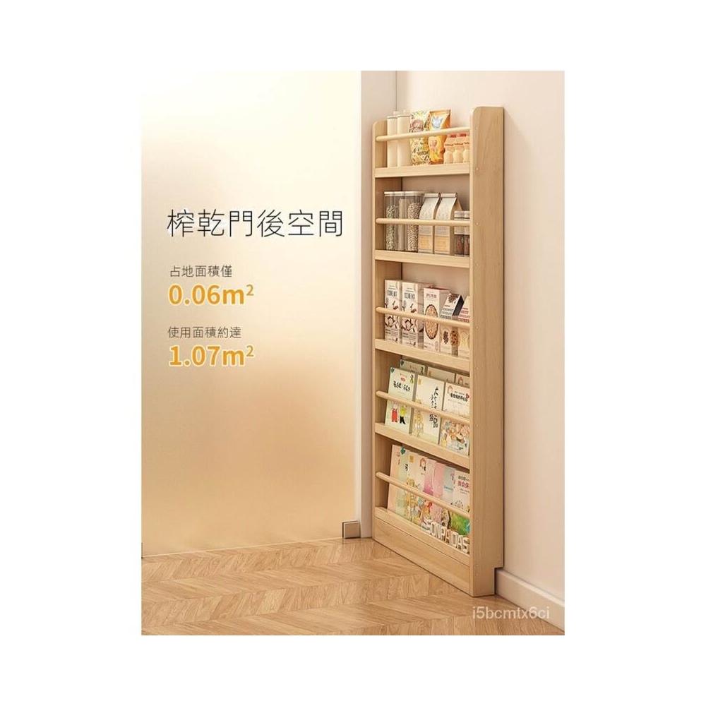 凱莎優選 夾縫書架 超窄書架 置物架落地 壁掛書架 門後縫隙收納櫃 實木兒童書櫃 多層墻上薄櫃 窄縫置物窄櫃子