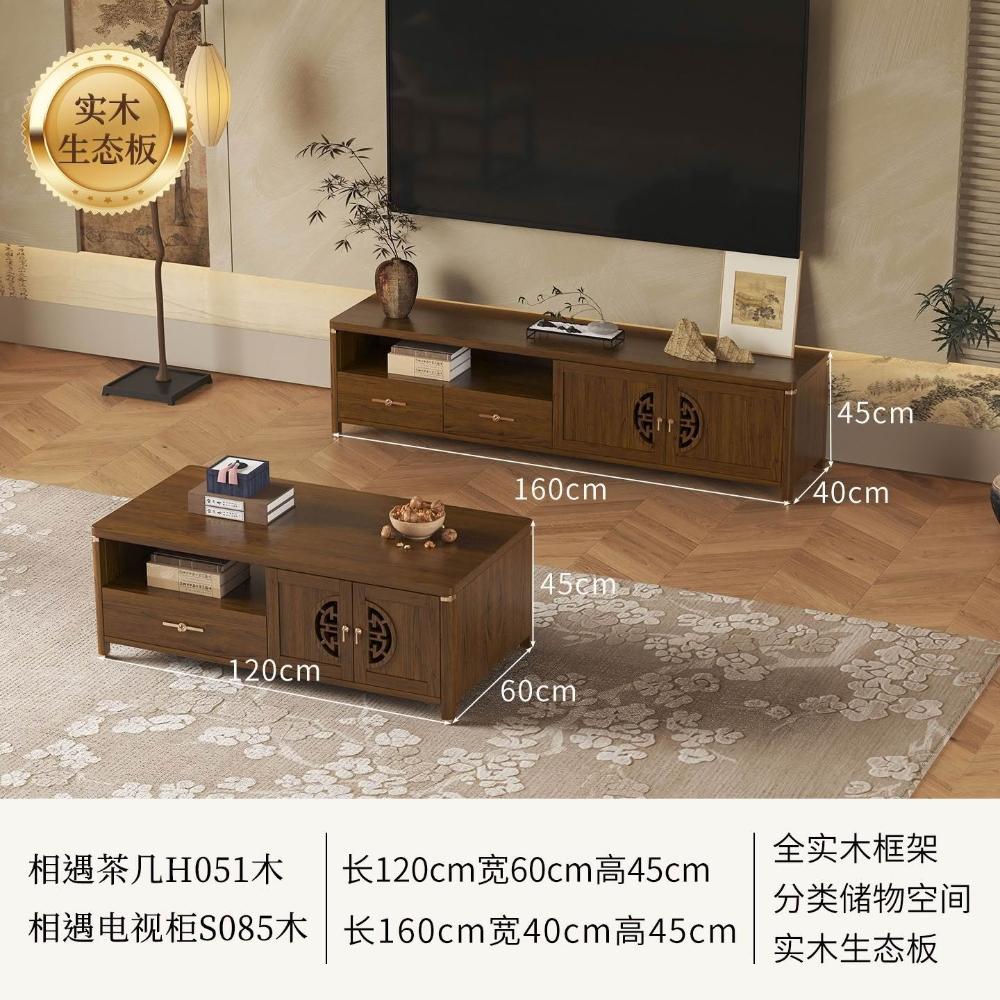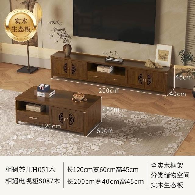 凱莎優選 實木電視櫃茶幾套裝邊櫃客廳家用落地櫃收納櫃儲物櫃新中式中古風