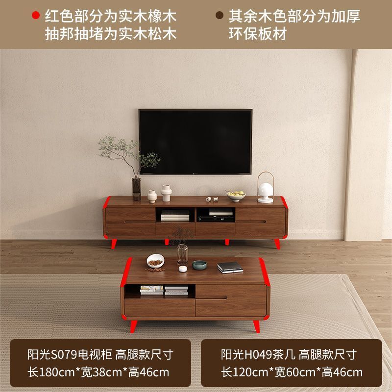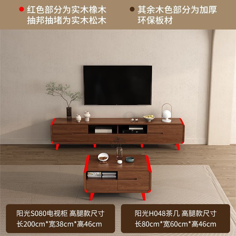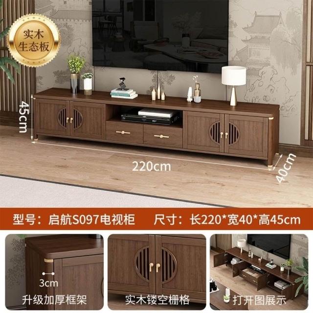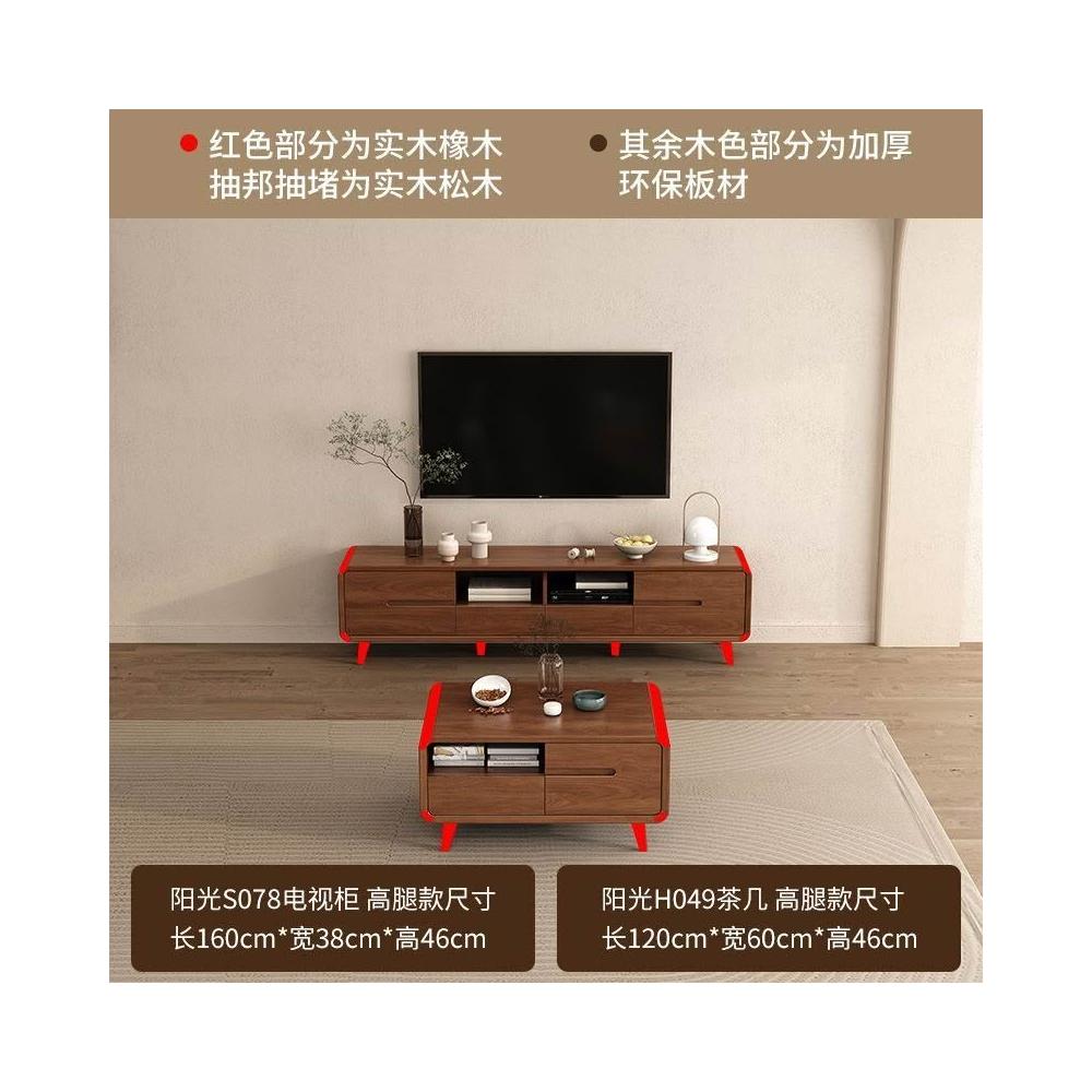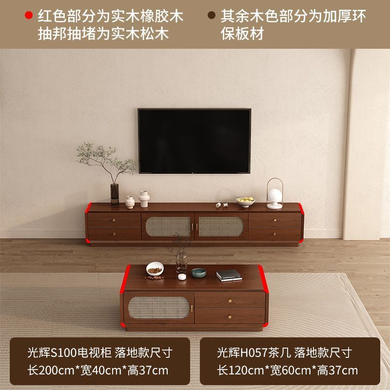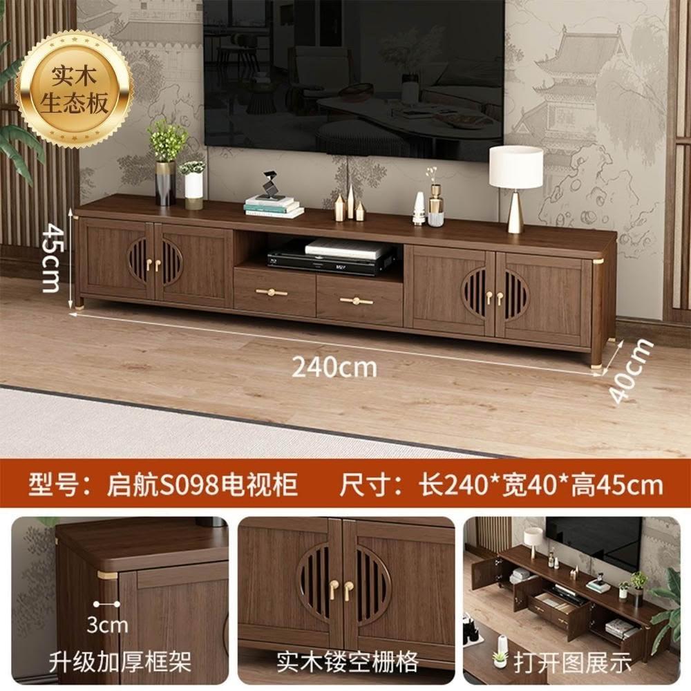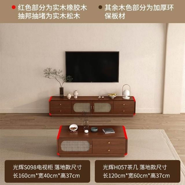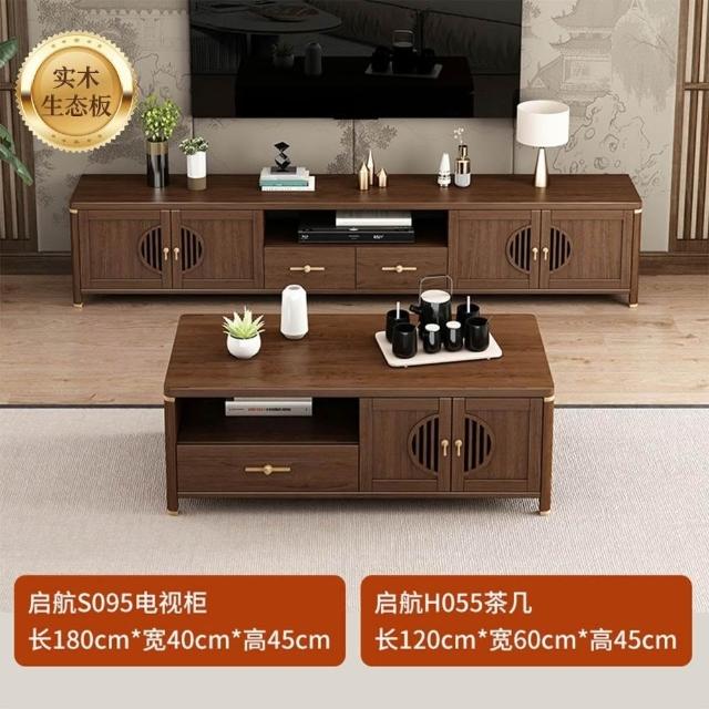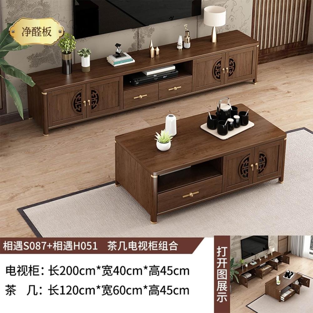 凱莎優選 實木電視櫃茶幾套裝邊櫃客廳家用落地櫃收納櫃儲物櫃新中式中古風