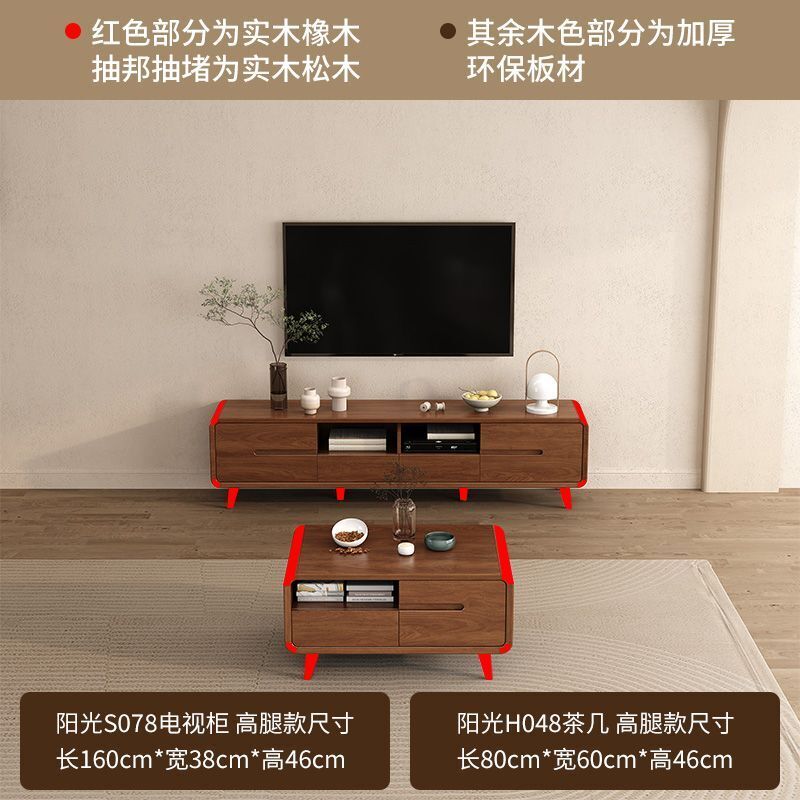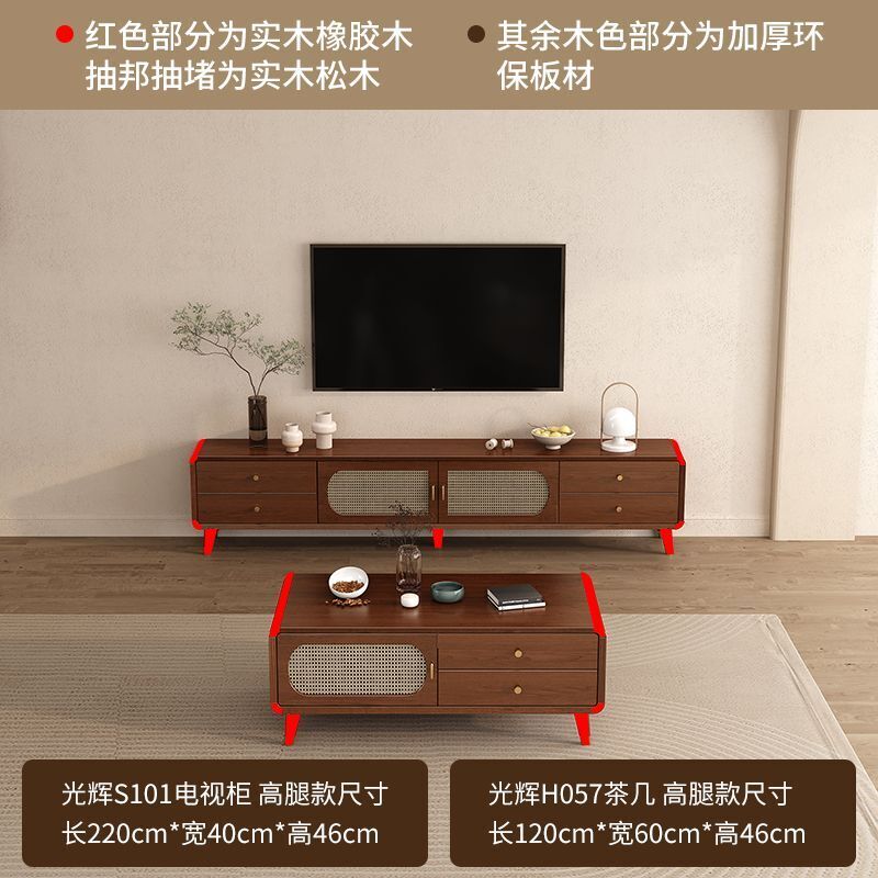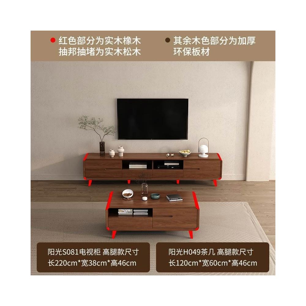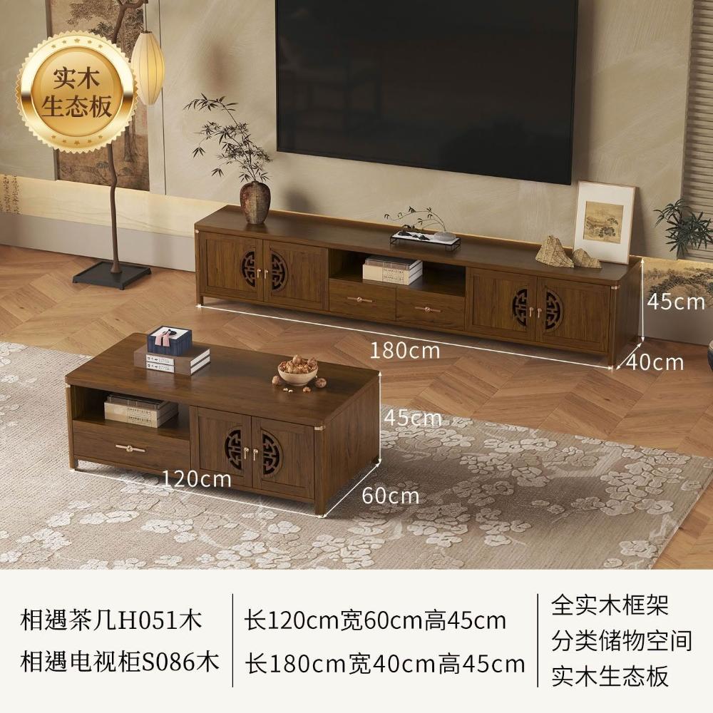 凱莎優選 實木電視櫃茶幾套裝邊櫃客廳家用落地櫃收納櫃儲物櫃新中式中古風