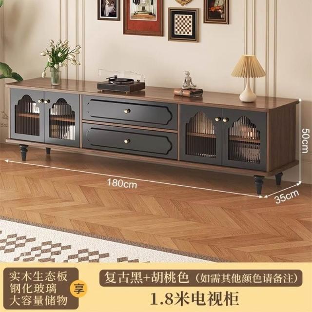 凱莎優選 實木電視櫃法式復古美式客廳家用落地儲物櫃中古茶幾組合收納櫃