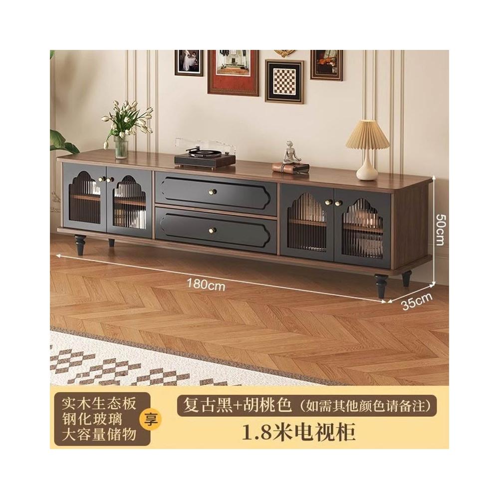 凱莎優選 實木電視櫃法式復古美式客廳家用落地儲物櫃中古茶幾組合收納櫃