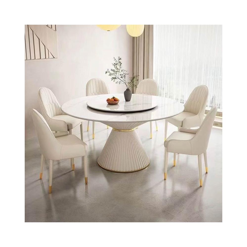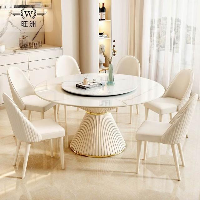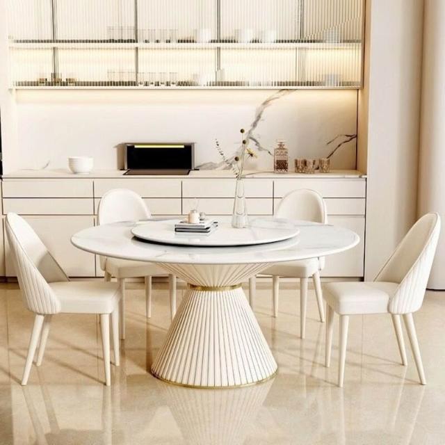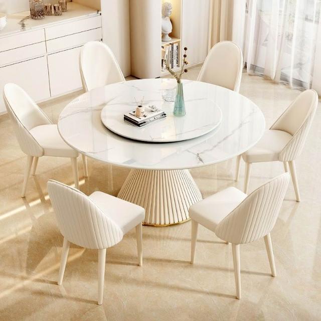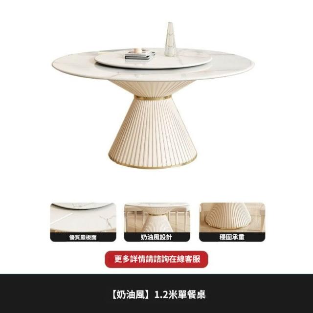 奶油風亮光巖板餐桌椅組合圓形簡約現代餐桌小戶型吃飯桌輕奢圓桌