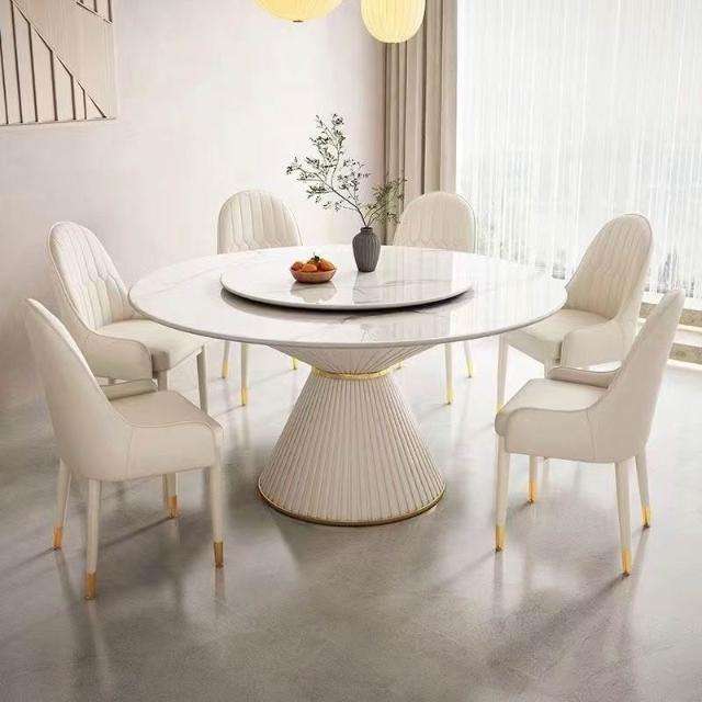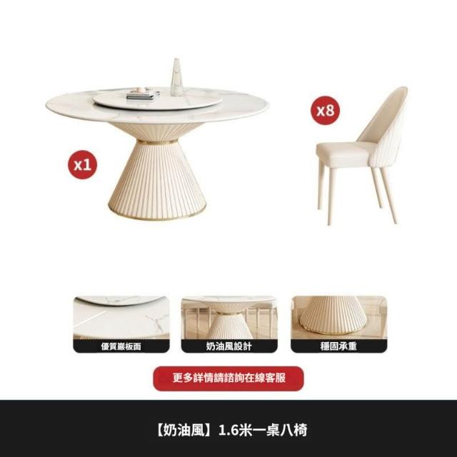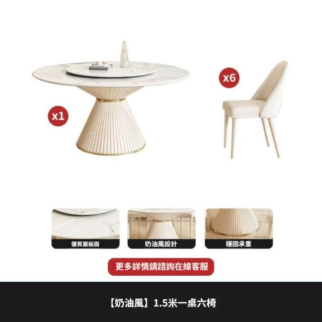 奶油風亮光巖板餐桌椅組合圓形簡約現代餐桌小戶型吃飯桌輕奢圓桌