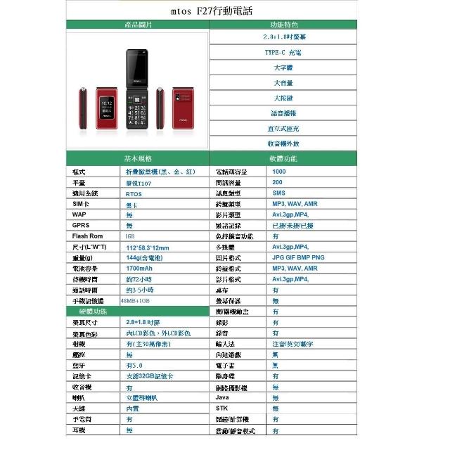 MTOF27長輩機 原廠直售 4G VOLTE通話 TYPE C充電 按鍵機 繁體注音 直立座充 掀蓋機