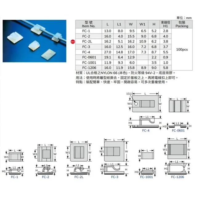 KSS凱士士 黏式固定夾 (單顆) FC-1 FC-2 FC-2L 理線器 電線固定器 自黏式固定夾 電線固定座