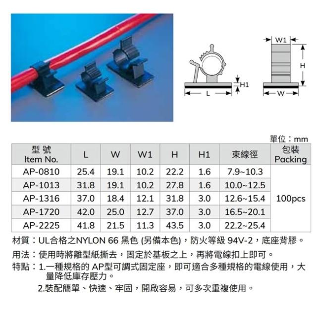 KSS凱士士 可調式配線固定座 AP-0810 黏式配線固定座 圓型扣線器 理線器 電線固定器 (單顆)
