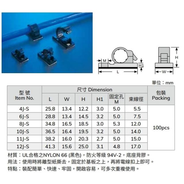 KSS凱士士 黏式配線固定座 4J-S 6J-S 8J-S 理線器 電線固定器 背膠扣線器 卡式整線器