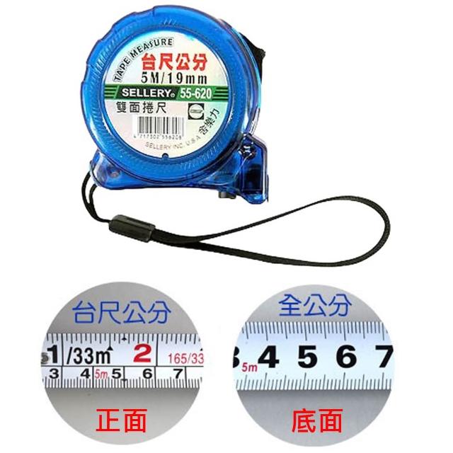 SELLERY舍樂力 55-620 雙面捲尺 台尺/公分 5M/19mm 底面也有刻度 雙面卷尺