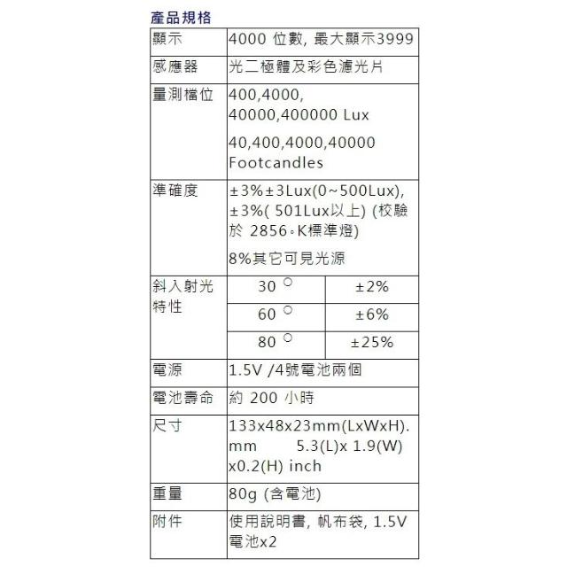 TENMARS TM-721 LUX/FC 口袋型照度錶 照度計 亮度測試 測量流明
